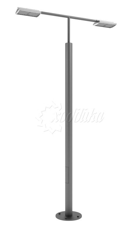 Стальной фонарный столб «поло2-э» со светильником 3,2 м.(80 вт). Подробные характеристики Материалы: Тумба, стойка и кронштейн: Сталь. Покрыты порошковой полимерной краской. Возможность выбора цвета по каталогу RAL. Соединительные и декоративные элементы: Сталь. Светильник: светодиодный светильник Элегант 80 Вт - 2 шт. Технические характеристики: Источник света: Патрон E-27 под лампу накаливания до 150 Вт, либо энергосберегающую лампу. Возможна комплектация ПРА под Nat70, Nat100, ДРЛ80, ДРЛ125 и источником света. Возможно комплектование светодиодными модулями. Высота: от 3,2 до 6,4 м Вес: от 43 кг Монтаж столба на объекте производится путем бетонирования стойки или закладной детали, с последующим креплением столба болтовым соединением. Фонарный столб имеет ревизионное окошко для обслуживания электрической цепи. Закладной фундамент заказывается отдельно и в цену не входит. О модели Используется в качестве функционального и декоративного освещения улиц, парков, проспектов, скверов, дворов и других общественных мест. Подходит как для дачи и сада, так и для мест муниципального назначения. Монтаж столба на объекте производится путем бетонирования стойки или закладной детали, с последующим креплением столба болтовым соединением.