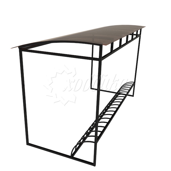 Опоры навеса устанавливаются в грунт путем бетонирования, либо болтовым креплением. Порошковая окраска по каталогу RAL. Возможно изготовление массовых вело-парковок любых конфигураций и количества парковочных мест.