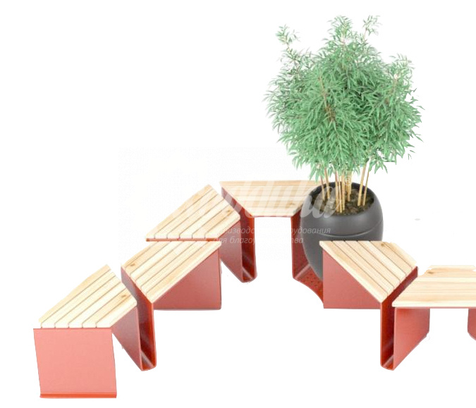Модульная скамейка «эраунд 4». Подробные характеристики Материалы: Опоры: Cталь. Покрыты порошковой полимерной краской. Возможность выбора цвета по каталогу RAL. Сиденье: Брус из хвойных пород древесины - сосна/ель (варианты исполнения: лиственница, композитные материалы) различного сечения. Огнебиозащитные пропитки + тонировочный состав с антисептиком + два слоя яхтного лака с промежуточным шлифованием. Возможность выбора цвета из палитры. Фурнитура: Оцинкованная. Возможность выбора цвета фурнитуры по каталогу RAL. Стандартный цвет (по умолчанию) - серебристый. Возможность использования потайной/скрытой фурнитуры. Технические характеристики: Длина модуля: 1 сторона: 910 мм 2 сторона: 440 мм Высота модуля: 430 мм Ширина модуля: 420 мм Вес одной секции: 21.8 кг Высота сиденья: 430 мм Ширина сиденья: 420 мм Габариты посадочного места: 1 сторона: 690 мм 2 сторона: 330 мм Длина решётки: 690 мм Ширина решётки: 769 мм О модели Выставка цветы ВДНХ 2017 Варианты цвета на выбор: , махагон, палисандр, тик,