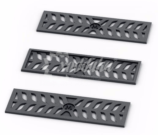 Решётка дождеприёмного колодца «ампир». Подробные характеристики Материалы: Основание: Чугунное художественное литьё. Покрыто порошковой полимерной краской. Возможность выбора цвета по каталогу RAL. Стандартный цвет (по умолчанию) - черный + бронзовое патинирование. Технические характеристики: Длина: 560 мм Ширина: 170 мм Высота: 30 мм