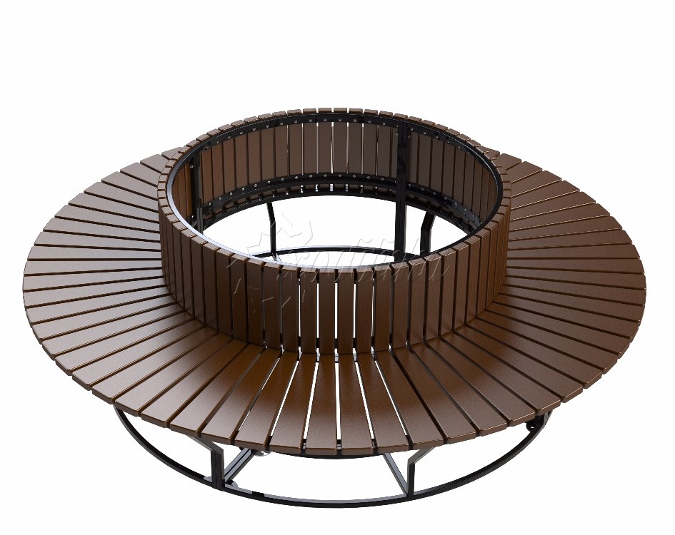 Диван стальной «круглый» r550. Подробные характеристики Скамейка поставляется в разобранном виде! Материалы: Опоры: Cталь. Покрыты порошковой полимерной краской. Возможность выбора цвета по каталогу RAL. Стандартный цвет (по умолчанию) - черный. Сиденье и спинка: Брус из хвойных пород древесины - ангарская сосна (варианты исполнения: лиственница, композитные материалы) различного сечения. Огнебиозащитные пропитки + тонировочный состав с антисептиком + два слоя яхтного лака с промежуточным шлифованием. Возможность выбора цвета из палитры. Фурнитура: Оцинкованная. Возможность выбора цвета фурнитуры по каталогу RAL. Стандартный цвет (по умолчанию) - серебристый. Возможность использования потайной/скрытой фурнитуры. Технические характеристики: Высота: 745 мм Диаметр: 2154 мм Высота сиденья: 440 мм Радиус внутренний: 550 мм Вес версии 2154 мм: кг Варианты цвета на выбор: , махагон, палисандр, тик,
