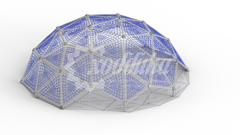 Канатная конструкция «сократ-34.1». Подробные характеристики Материалы: Сетка канатной конструкции изготовлена из армированного каната, фиксаторы каната - шарнирные алюминиевые соединители. В комплект также входят трубы для металлического каркаса и полусферические соединители. Характеристики: Длина: 10100 мм Ширина: 9300 мм Высота: 3800 мм