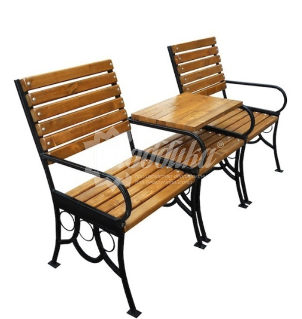 Скамейка модульная «трио». Подробные характеристики Скамейка поставляется в разобранном виде! Материалы: Опоры: Cталь. Покрыты порошковой полимерной краской. Возможность выбора цвета по каталогу RAL. Стандартный цвет (по умолчанию) - черный. Сиденье и спинка: Брус из хвойных пород древесины - ангарская сосна (варианты исполнения: лиственница, композитные материалы) различного сечения. Огнебиозащитные пропитки + тонировочный состав с антисептиком + два слоя яхтного лака с промежуточным шлифованием. Возможность выбора цвета из палитры. Фурнитура: Оцинкованная. Возможность выбора цвета фурнитуры по каталогу RAL. Стандартный цвет (по умолчанию) - серебристый. Возможность использования потайной/скрытой фурнитуры. Технические характеристики: Высота: 930 мм Ширина: 600 мм Длина: 2000 мм Высота сиденья: 430 мм Ширина сиденья: 400 мм Длина посадочного места: 600 мм Вес: 41.6 кг О модели Уникальная модульная скамейка «Трио» разработана инженерами нашей компании на основе пожеланий клиентов. Сочетание двух посадочных мест со складным столиком придает оригинальность и удобство использования. Эргономичный дизайн скамейки позволяет комфортно расположиться людям различного роста и комплекции. Варианты цвета на выбор: , махагон, палисандр, тик,