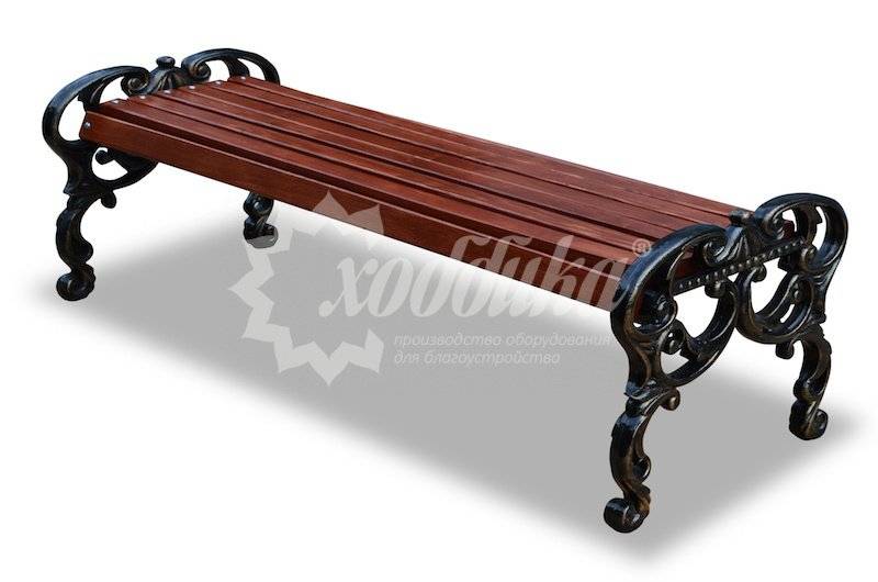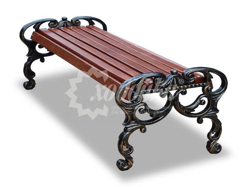 Банкетка чугунная «трон». Подробные характеристики Скамейка поставляется в разобранном виде! Лиственница лучше чем сосна! В производстве чугунных скамеек мы используем лиственницу. Материалы: Опоры: Чугунное художественное литьё. Покрыты порошковой полимерной краской. Возможность выбора цвета по каталогу RAL. Стандартный цвет (по умолчанию) - черный. Сиденье и спинка: Брус - ангарская сосна (вариант исполнения: лиственница, композитные материалы, термодерево). Огнебиозащитные пропитки + тонировочный состав с антисептиком + два слоя яхтного лака с промежуточным шлифованием. Возможность выбора цвета из палитры. Также предусмотрена возможность покрытия бруса маслом для наружных работ. Фурнитура: Оцинкованная. Стандартный цвет (по умолчанию) - серебристый. Возможность использования потайной/скрытой фурнитуры. Технические характеристики: Длина: 600 - 2000 мм Ширина: 650 мм Высота: 500 мм Ширина сиденья: 510 мм Высота сиденья: 430 мм Вес: от 65 кг Варианты цвета на выбор: , махагон, палисандр,