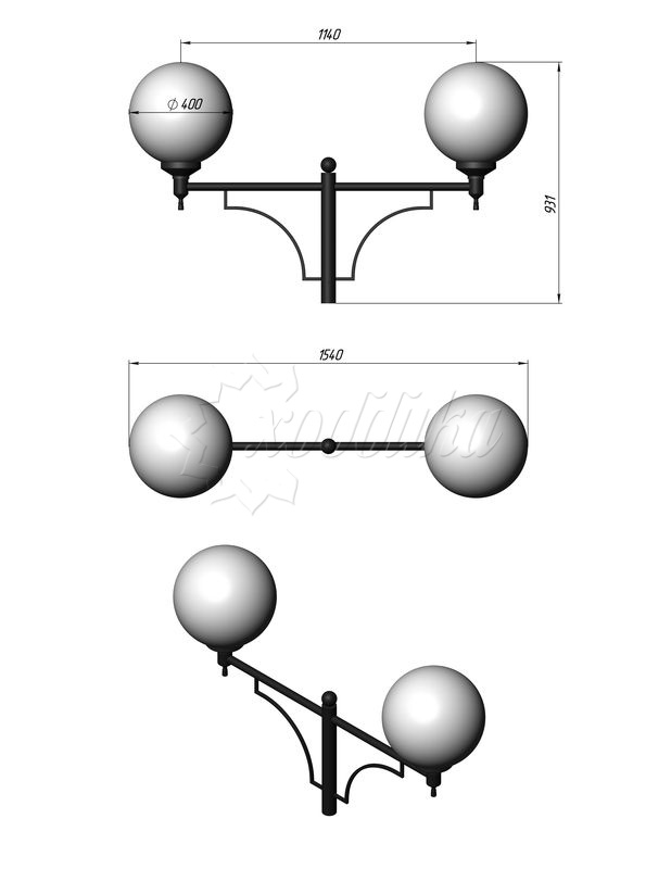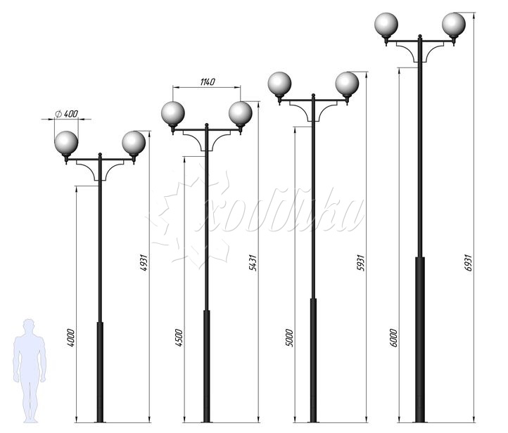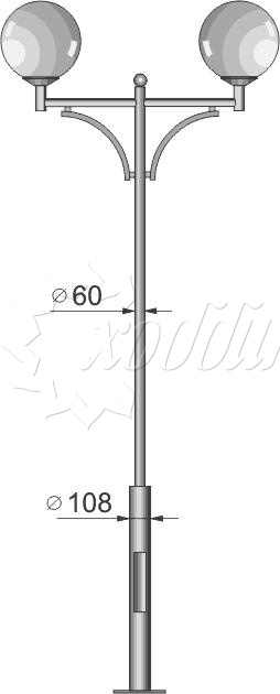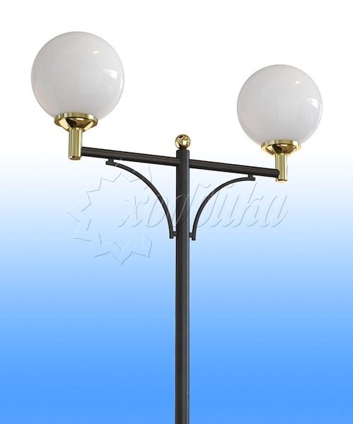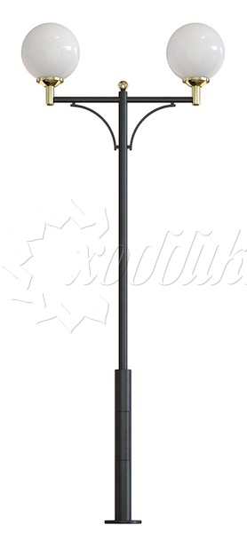 Стальной фонарный столб т-20-2 со светильниками 4,931 м.. Подробные характеристики Материалы: Тумба, стойка и кронштейн: Сталь. Покрыты порошковой полимерной краской. Возможность выбора цвета по каталогу RAL. Соединительные и декоративные элементы: Сталь. Светильник: Шар 400 мм. Технические характеристики: Источник света: Патрон E-27 под лампу накаливания до 150 Вт, либо энергосберегающую лампу. Возможна комплектация ПРА под Nat70, Nat100, ДРЛ80, ДРЛ125 и источником света. Возможно комплектование светодиодными модулями. Высота: от 4,931 до 6,931 м Вес: от 54 кг Монтаж столба на объекте производится путем бетонирования стойки или закладной детали, с последующим креплением столба болтовым соединением. Фонарный столб имеет ревизионное окошко для обслуживания электрической цепи. Закладной фундамент заказывается отдельно и в цену не входит. О модели Используется в качестве функционального и декоративного освещения улиц, парков, проспектов, скверов, дворов и других общественных мест. Подходит как для дачи и сада, так и для мест муниципального назначения. Монтаж столба на объекте производится путем бетонирования стойки или закладной детали, с последующим креплением столба болтовым соединением.