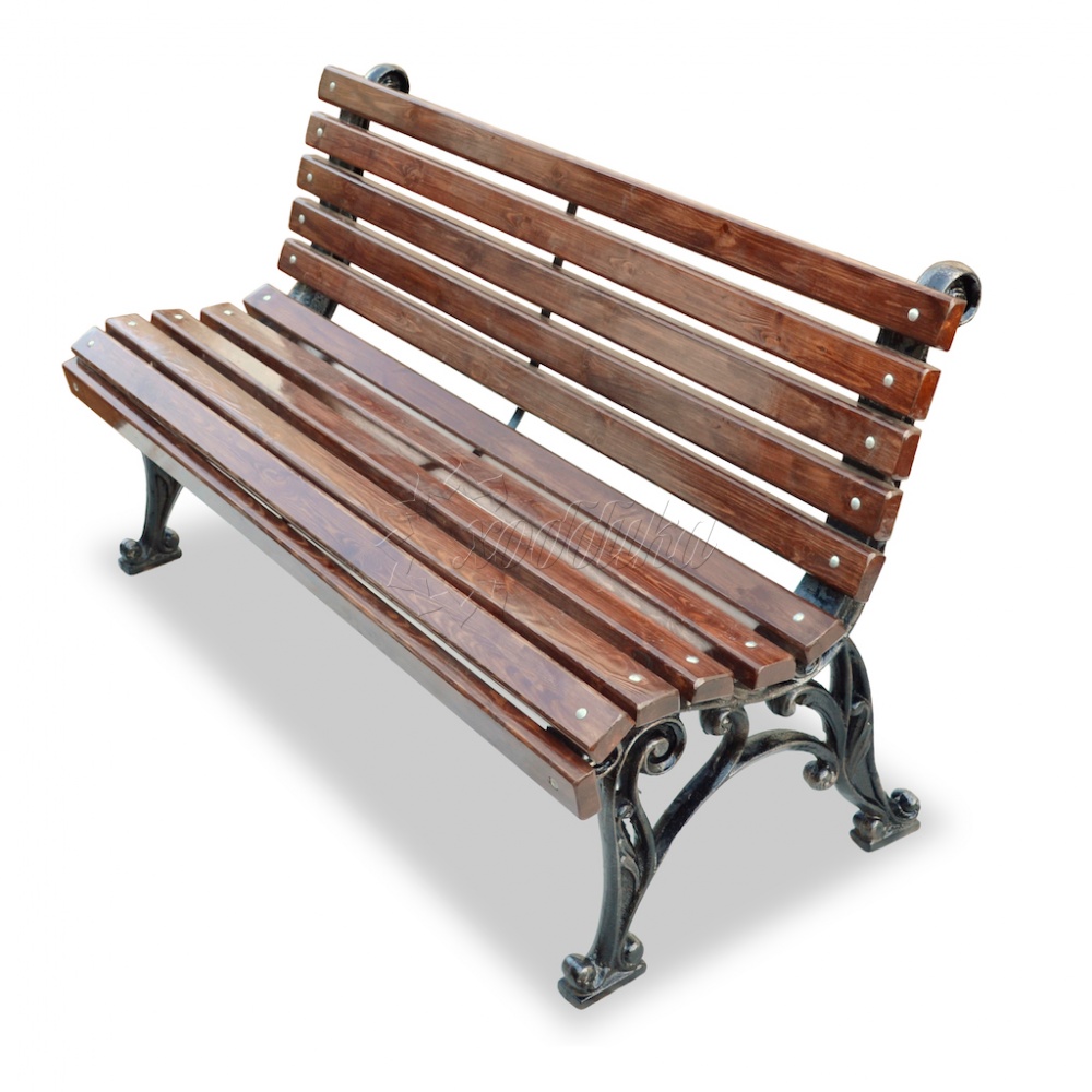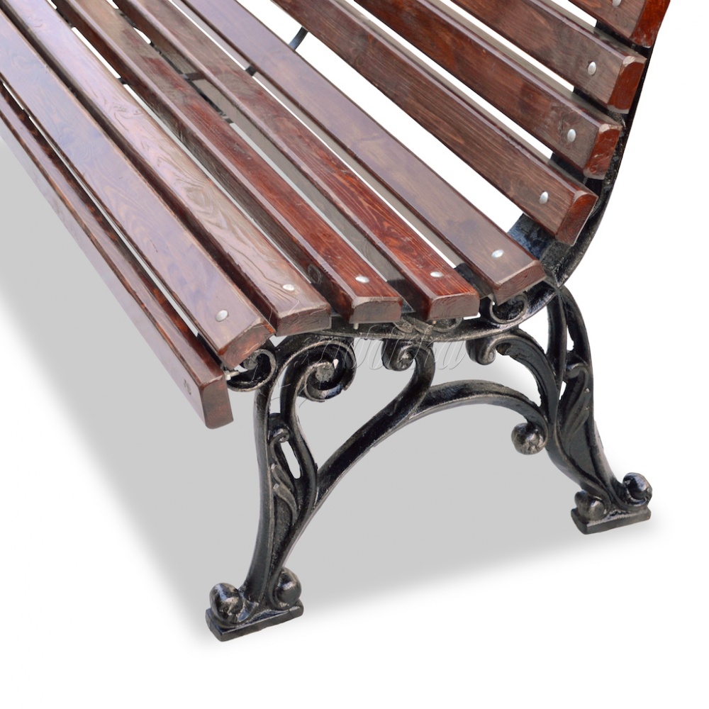 Скамейка чугунная «классика» 1,5 м. Подробные характеристики Скамейка поставляется в разобранном виде! Лиственница лучше чем сосна! В производстве чугунных скамеек мы используем лиственницу. Материалы: Опоры: Чугунное художественное литьё. Покрыты порошковой полимерной краской. Возможность выбора цвета по каталогу RAL. Стандартный цвет (по умолчанию) - черный + бронзовое патинирование. Сиденье и спинка: Брус - ангарская сосна/лиственница (вариант исполнения: композитные материалы) различного сечения. Огнебиозащитные пропитки + тонировочный состав с антисептиком + два слоя яхтного лака с промежуточным шлифованием. Возможность выбора цвета из палитры. Фурнитура: Оцинкованная. Возможность выбора цвета фурнитуры по каталогу RAL. Стандартный цвет (по умолчанию) - серебристый. Возможность использования потайной/скрытой фурнитуры. Технические характеристики: Высота: 820 мм Ширина: 620 мм Длина: 600 - 3000 мм Высота сиденья: 440 мм Ширина сиденья: 400 мм Длина посадочного места: 600 - 3000 мм Вес версии 0.6 м: 55.78 кг Вес версии 1.2 м: 61.96 кг Вес версии 1.5 м: 64.60 кг Вес версии 1.8 м: 68.24 кг Вес версии 2.0 м (2 опоры): 69.00 кг Вес версии 2.0 м (3 опоры): 93.80 кг Вес версии 2.5 м (3 опоры): 99.20 кг Вес версии 3.0 м (3 опоры): 103.60 кг Варианты цвета на выбор: , махагон, палисандр, тик,