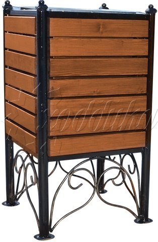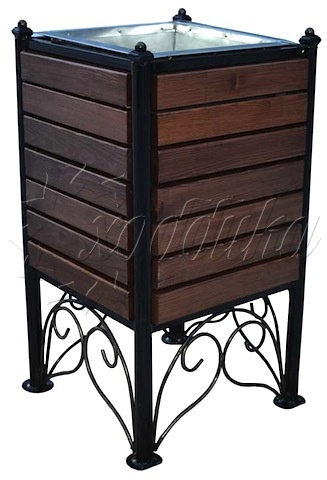При обустройстве территории садовой мебелью из дерева, немаловажно выдержать композицию в одном стиле. Урну «Флора» можно тонировать под цвет садовой мебели. Она станет прекрасным дополнением и завершающим акцентом для вашего загородного участка или муниципальной территории. Для удобства пользования урна оборудована съемным ведром для мусора.
