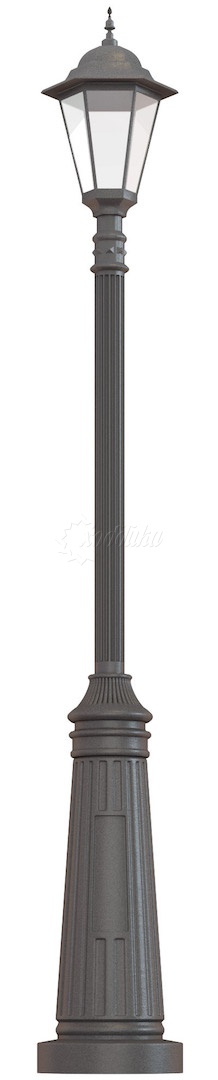 Фонарный столб л-04 со светильнкиом 3,609 м.. Подробные характеристики Материалы: Основание и кронштейн: Чугунное художественное литьё. Покрыты порошковой полимерной краской. Возможность выбора цвета по каталогу RAL. Стандартный цвет (по умолчанию) - черный + бронзовое патинирование. Стойка: Сталь. Покрыта порошковой полимерной краской. Возможность выбора цвета по каталогу. Стандартный цвет (по умолчанию) - черный + бронзовое патинирование. Светильник: Бремен. Технические характеристики: Источник света: Патрон E-27 под лампу накаливания до 150 Вт, либо энергосберегающую лампу. Возможна комплектация ПРА под Nat70, Nat100, ДРЛ80, ДРЛ125 и источником света. Возможно комплектование светодиодными модулями. Высота: 3,609 м Вес: 150 кг Установка производится путем бетонирования стойки (закладного фундамента), либо бетонированием закладной детали с последующим креплением стойки болтовым соединением. Закладной фундамент заказывается отдельно и в цену не входит. О модели Используется для освещения парков, скверов, коттеджных поселков, частных домов, прилегающих территорий зданий. Установка производится путем бетонирования стойки (закладного фундамента), либо бетонированием закладной детали с последующим креплением стойки болтовым соединением.