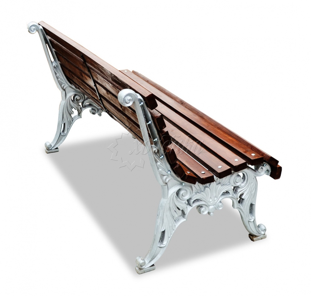 Скамейка алюминиевая «белые ночи» без подлокотников 1,5 м. Подробные характеристики Скамейка поставляется в разобранном виде! В производстве алюминиевых скамеек мы используем ангарскую сосну. Материалы: Опоры: Алюминиевое художественное литьё. Не требуют вообще никакой обработки и защиты лако-красочными материалами. По вашему желанию опоры могут быть покрыты порошковой полимерной краской. Возможность выбора цвета по каталогу RAL. Стандартный цвет (по умолчанию) - серебристый. Сиденье и спинка: Брус - ангарская сосна (вариант исполнения: лиственница, композитные материалы) различного сечения. Огнебиозащитные пропитки + тонировочный состав с антисептиком + два слоя яхтного лака с промежуточным шлифованием. Возможность выбора цвета из палитры. Фурнитура: Оцинкованная. Возможность выбора цвета фурнитуры по каталогу RAL. Стандартный цвет (по умолчанию) - серебристый. Возможность использования потайной/скрытой фурнитуры. Технические характеристики: Высота: 810 мм Ширина: 710 мм Длина: 600 - 3000 мм Высота сиденья: 410 мм Ширина сиденья: 500 мм Вес: от 60 кг Варианты цвета на выбор: , махагон, палисандр, тик,