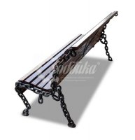 Скамейка парковая «лукоморье». Подробные характеристики Скамейка поставляется в разобранном виде! Материалы: Опоры: Сталь. Покрыты порошковой полимерной краской. Возможность выбора цвета по каталогу RAL. Стандартный цвет (по умолчанию) - черный. Сиденье и спинка: Брус из хвойных пород древесины - ангарская сосна (варианты исполнения: лиственница, композитные материалы, термодерево). Огнебиозащитные пропитки + тонировочный состав с антисептиком + два слоя яхтного лака с промежуточным шлифованием. Возможность выбора цвета из палитры. Фурнитура: Оцинкованная. Стандартный цвет (по умолчанию) - серебристый. Возможность использования потайной/скрытой фурнитуры. Технические характеристики: Длина: 600 - 3000 мм Ширина: 740 мм Высота: 810 мм Ширина сиденья: 440 мм Высота сиденья: 460 мм Вес: от 47 кг О модели Скамейка «Лукоморье» — это уникальная модель, опоры которой выполнены из цепи. Звенья прочно соединены между собой при помощи сварки, при этом создается ощущение, что скамейка висит в воздухе. Модель пользуется особой популярностью при благоустройстве набережных, учебных заведений, а также соборов, расположенных у моря. Варианты цвета на выбор: , махагон, палисандр, тик,