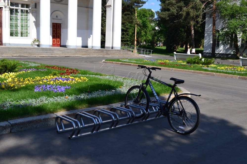 Велопарковка 7-ми местная velo-37 из нержавейки 7 мест. Подробные характеристики Материалы: Парковка: нержавеющая сталь. Технические характеристики: Кол-во мест: 7 Длина: 2870 мм Ширина: 600 мм Высота: 265 мм Вес: от 27 кг О модели Велосипедная парковка изготовлена из нержавеющей трубы и профиля. Возможность крепления в грунт методом бетонирования или анкерным методом. Вело-парковка может крепиться к полу или стене по желанию покупателя.