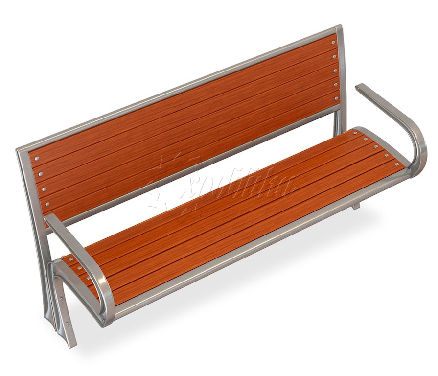 Скамейка алюминиевая «сидней» 1,8 м. Подробные характеристики Скамейка поставляется в разобранном виде! В производстве алюминиевых скамеек мы используем ангарскую сосну и лиственницу. Материалы: Опоры: Алюминиевое художественное литьё. Не требуют вообще никакой обработки и защиты лако-красочными материалами. По вашему желанию опоры могут быть покрыты порошковой полимерной краской. Возможность выбора цвета по каталогу RAL. Стандартный цвет (по умолчанию) - серебристый. Сиденье и спинка: Брус - ангарская сосна (вариант исполнения: лиственница, композитные материалы) различного сечения. Огнебиозащитные пропитки + тонировочный состав с антисептиком + два слоя яхтного лака с промежуточным шлифованием. Возможность выбора цвета из палитры. Фурнитура: Оцинкованная. Возможность выбора цвета фурнитуры по каталогу RAL. Стандартный цвет (по умолчанию) - серебристый. Возможность использования потайной/скрытой фурнитуры. Технические характеристики: Высота: 855 мм Ширина: 550 мм Длина: 1200 - 2000 мм Высота сиденья: 445 мм Ширина сиденья: 400 мм Вес: от 40 кг О модели Монтаж скамейки предусмотрен под бетонирование. Закладная деталь приобретается отдельно. Варианты цвета на выбор: , махагон, палисандр, тик,
