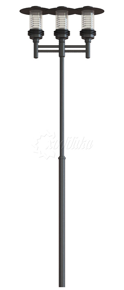 Уличный фонарь «техно - 3» 4,0 м.. Подробные характеристики Материалы: Тумба, стойка и кронштейн: Сталь. Покрыты порошковой полимерной краской. Возможность выбора цвета по каталогу RAL. Соединительные и декоративные элементы: Сталь. Технические характеристики: Источник света: Патрон E-27 под лампу накаливания до 150 Вт, либо энергосберегающую лампу. Возможна комплектация ПРА под Nat70, Nat100, ДРЛ80, ДРЛ125 и источником света. Возможно комплектование светодиодными модулями. Высота: от 4,0 до 5,0 м Вес: от кг Монтаж столба на объекте производится путем бетонирования стойки или закладной детали, с последующим креплением столба болтовым соединением. Фонарный столб имеет ревизионное окошко для обслуживания электрической цепи. Закладной фундамент заказывается отдельно и в цену не входит. О модели Используется для освещения парков, скверов, коттеджных поселков, прилегающих территорий зданий. Установка производится путем бетонирования закладной детали (глубина 1,5 метра) с последующим креплением стойки болтовым соединением.