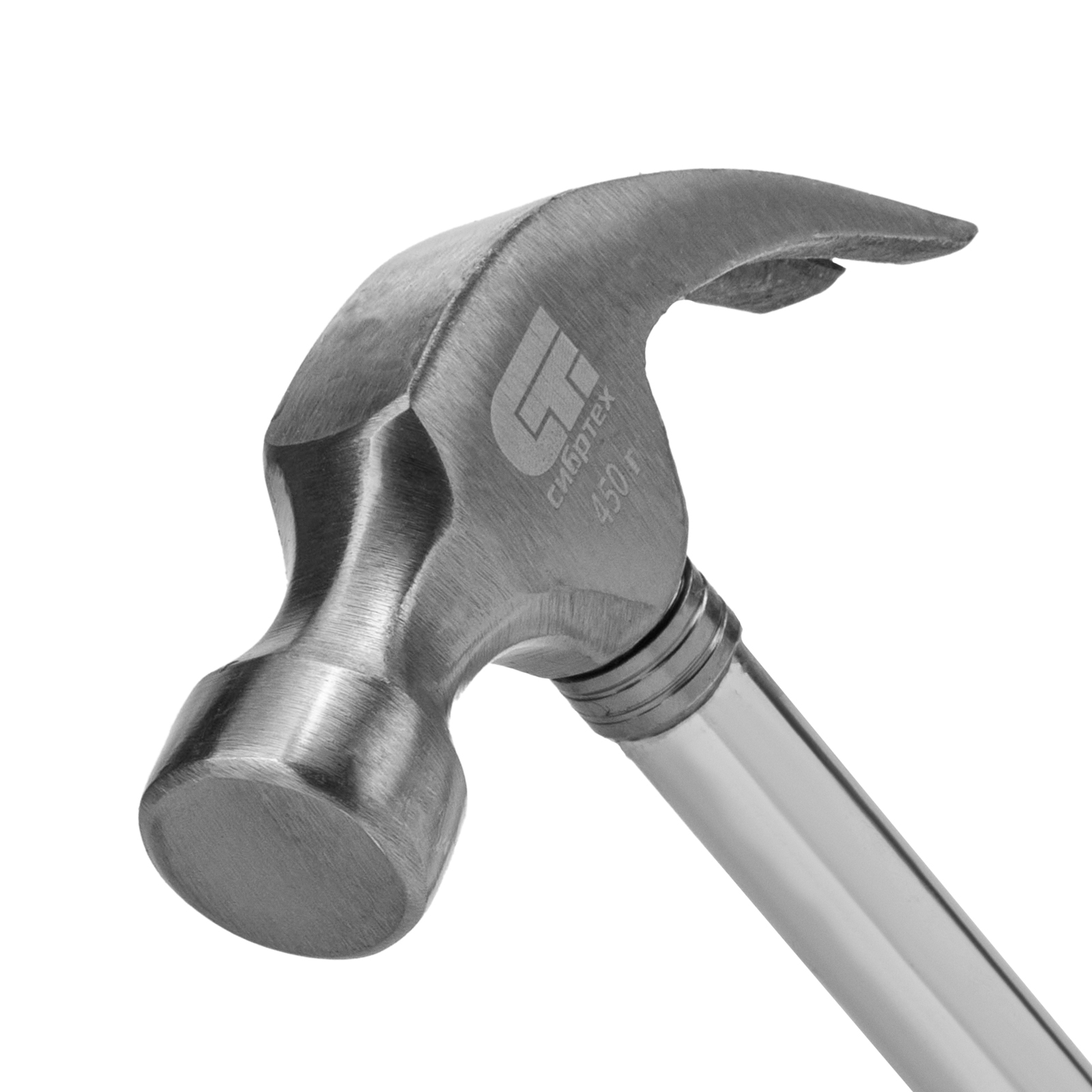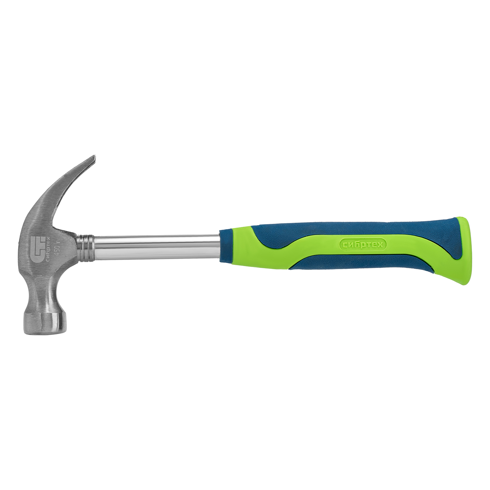 Молоток-гвоздодер, металлическая трубчатая обрезиненная рукоятка, вес 450 г, боек 27 мм сибртех