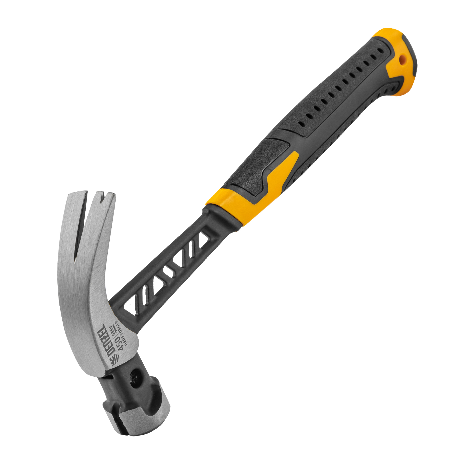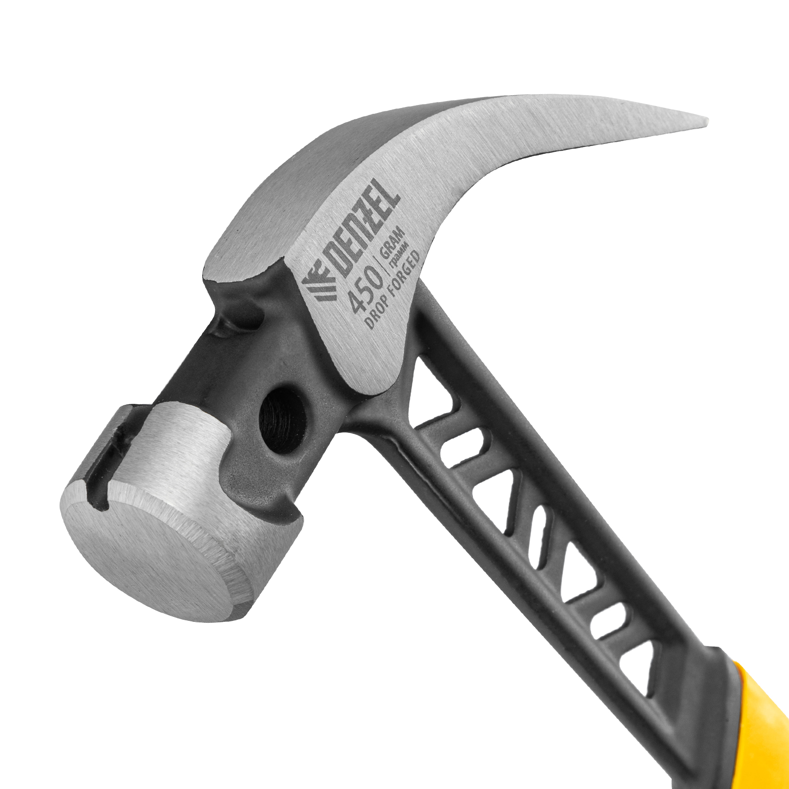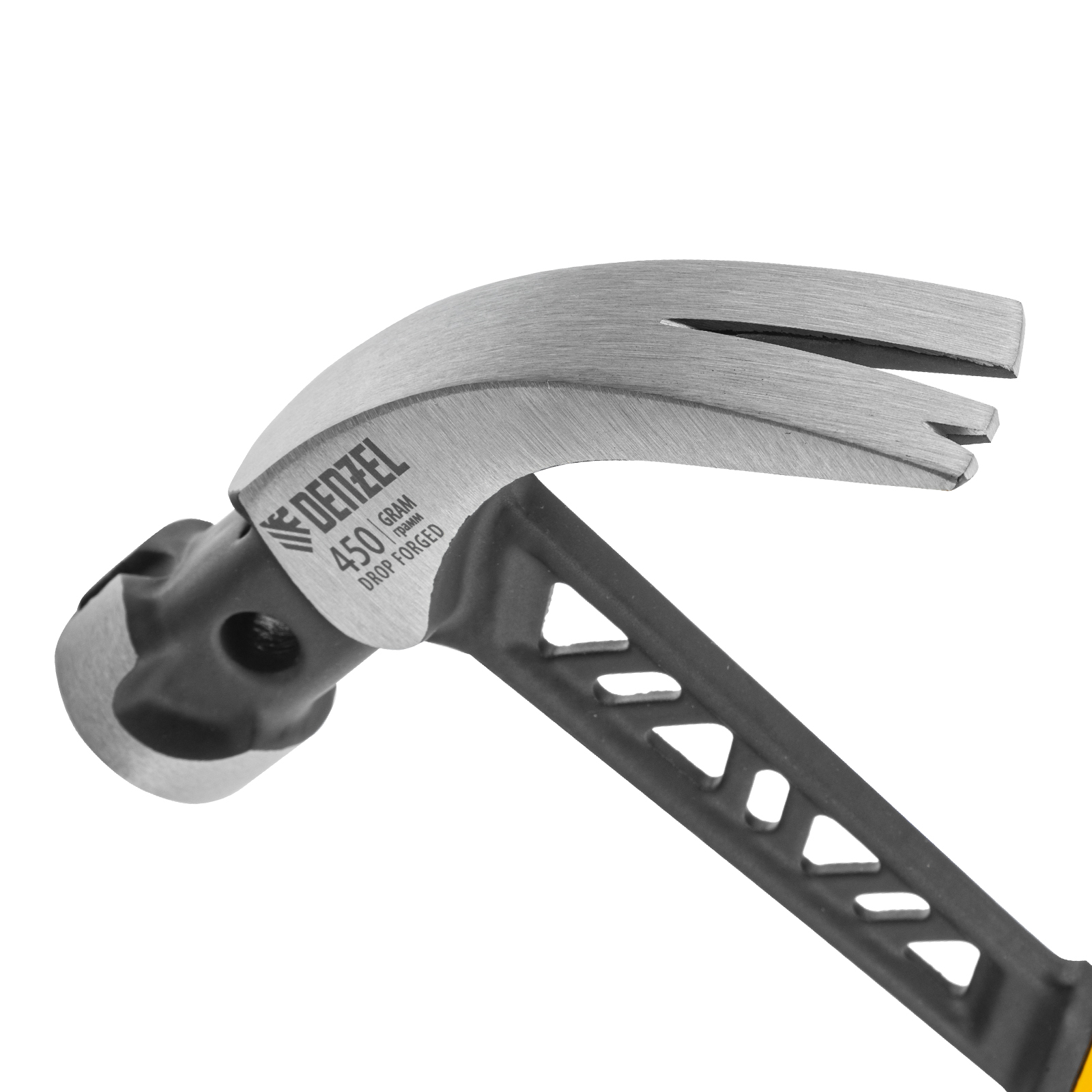 Молоток-гвоздодер 450 г, цельнокованый,боек с магнитом, двухкомп. обрезин. рук-ка Denzel