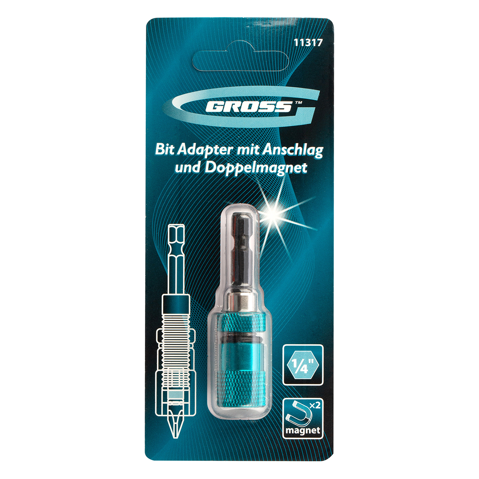 Адаптер для бит с ограничителем и двойным магнитом, 1/4 Gross