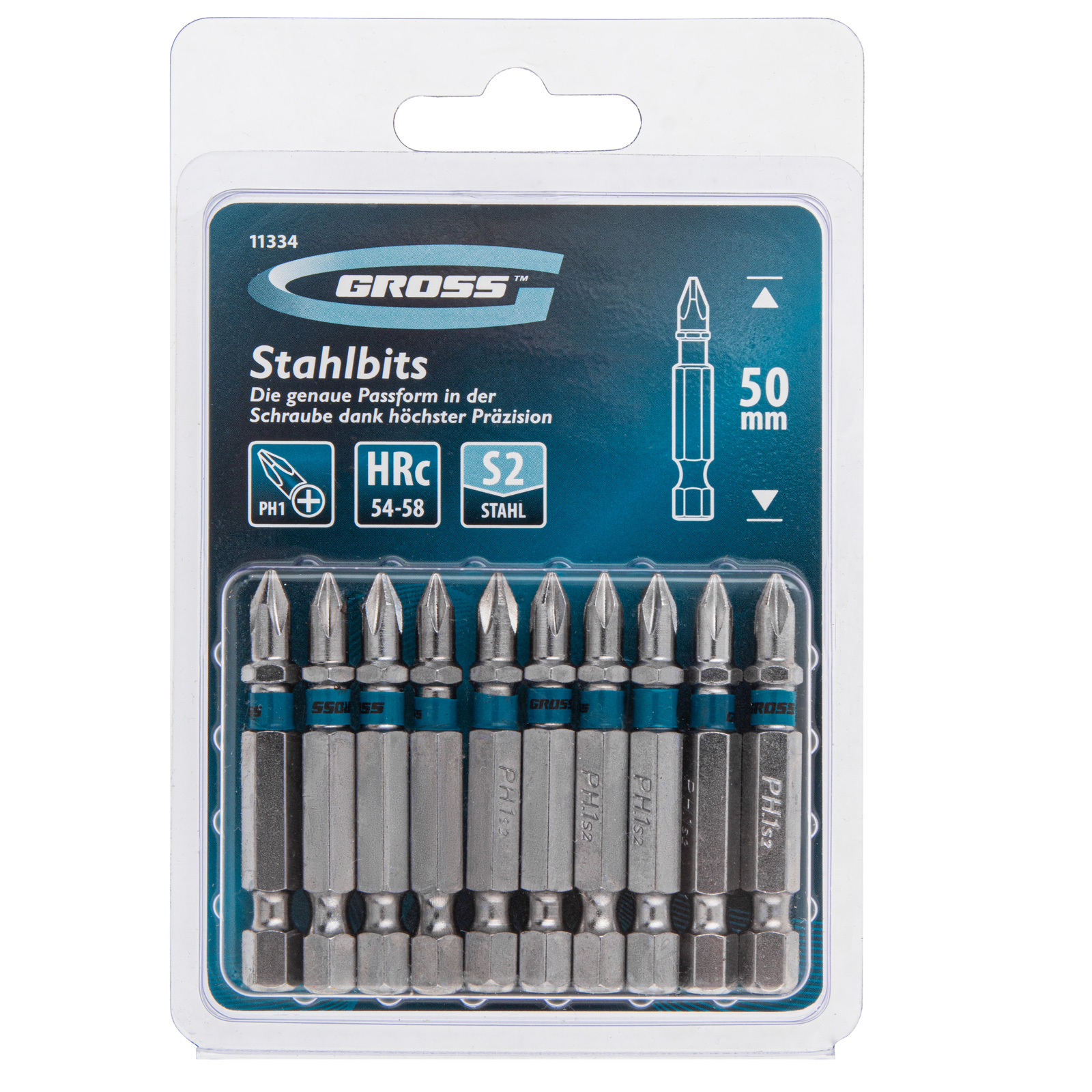Бита рн1 х 50, сталь s2, 10 шт. gross. Бренд: Gross Материал биты: легированная S2 Наконечник: PH1 Область применения: подходит для шуруповерта Особенности: магнитные свойства, профессиональные Размер хвостовика: 1u002F4 Тип хвостовика: прямой Страна бренда: Германия Страна производства: Тайвань Длина, мм: 50 Тип упаковки: блистер Длина в упаковке, мм: 127 Высота в упаковке, мм: 85 Вес (брутто), кг: 0.12 Биты PH1x50 мм: 10 шт Набор бит Gross 11334 состоит из 10 наиболее востребованных крестообразных насадок типа PH1 длиной 50 мм, с хвостовиком 1/4 дюйма, изготовленных из стали S2 и предназначенных для использования с шуруповертами и отвертками-адаптерами. За счет оптимальной геометрии и высокой точности исполнения шлица биты не проскальзывают в головках крепежа. Оснастки используются для монтажа и демонтажа саморезов по дереву, шурупов и других резьбовых крепежей. Преимущества Износостойкость и долговечность — биты изготовлены из японской легированной стали S2 твердостью 54-58 HRC, поэтому долго сохраняют рабочие свойства. Намагниченный шлиц — можно направлять шуруповерт с насаженным крепежом одной рукой, а другой придерживать закрепляемую деталь. Коррозионная стойкость — никелированная поверхность устойчива к появлению ржавчины. Защита от подделок — на каждой бите имеется цветное кольцо с логотипом ТМ Gross. Удобная упаковка — оснастка поставляется в жестком блистере с европодвесом. Продуманная комплектация — запаса из 10 штук хватит на целую бригаду. Высокое качество исполнения — насадки произведены на Тайване под строгим технологическим контролем.  развернуть описание ▼
