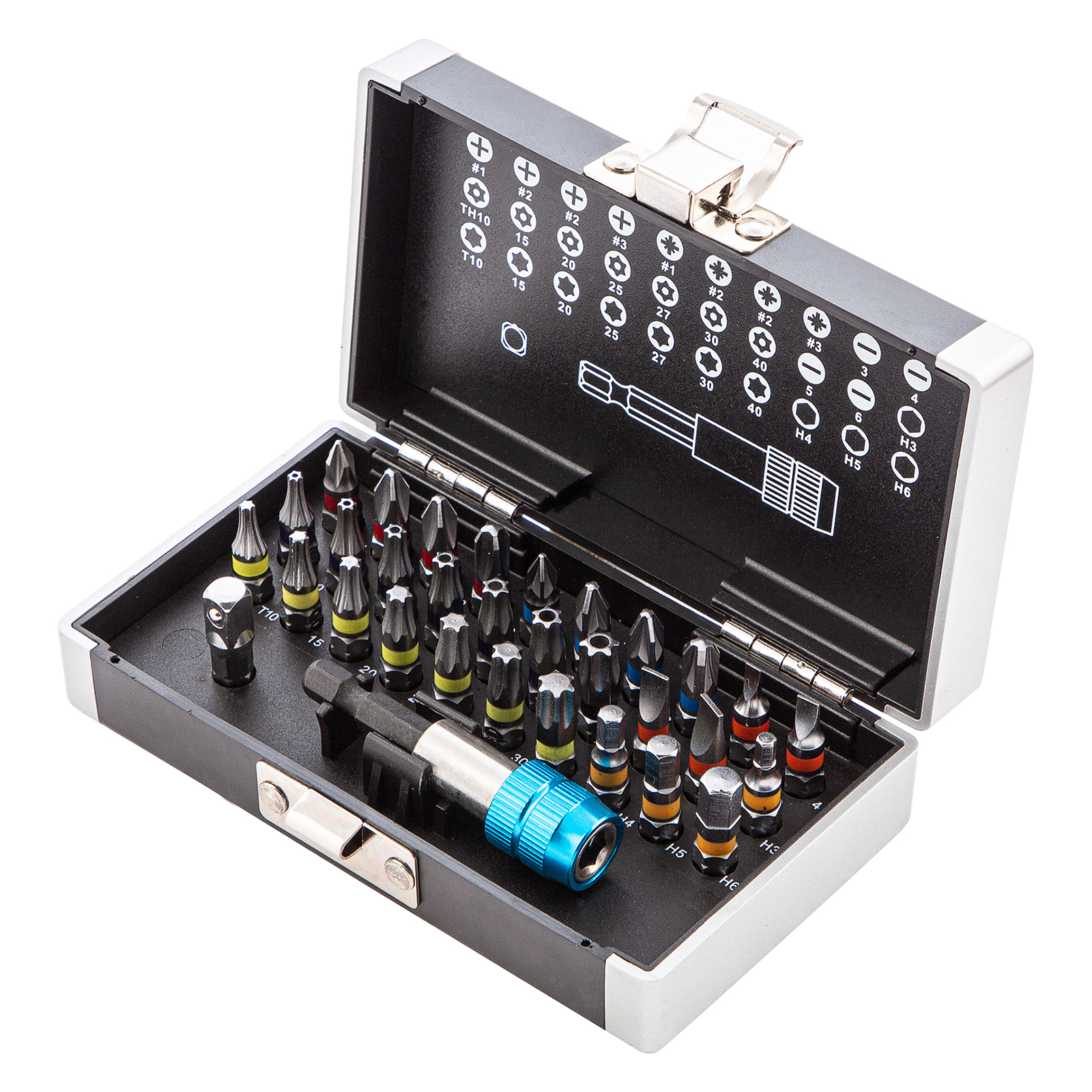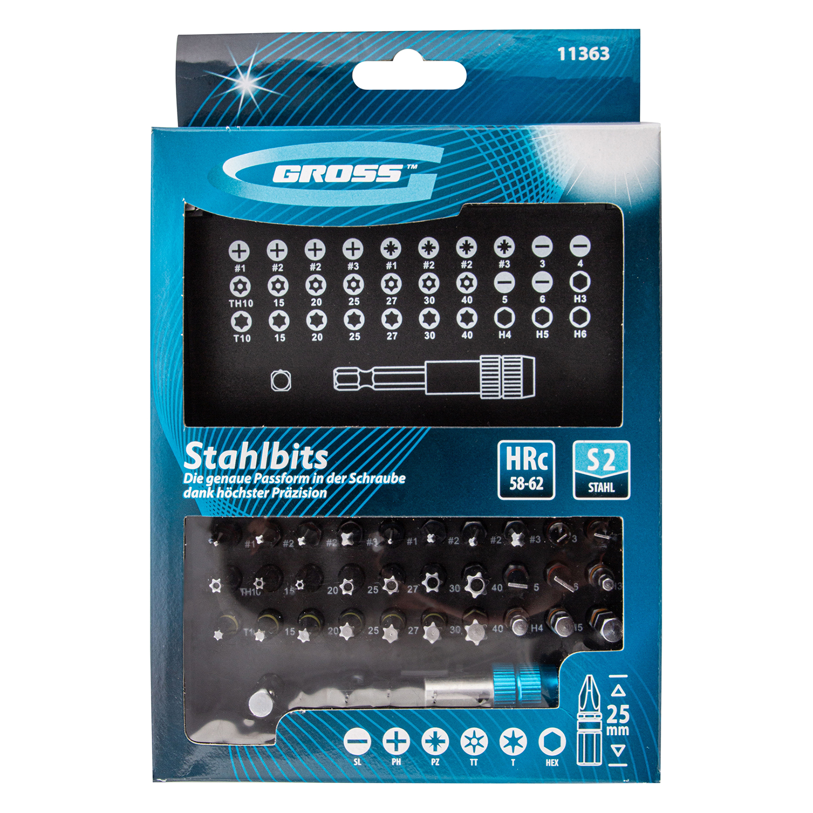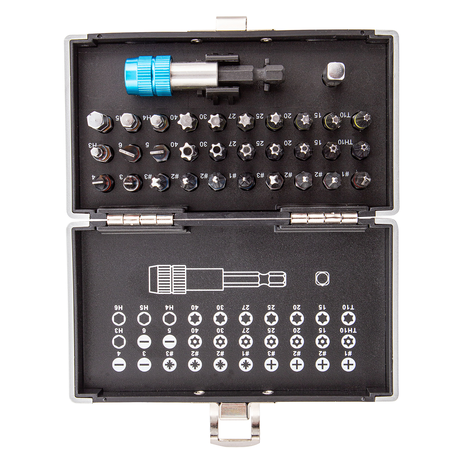 Набор бит, магнитный адаптер, сталь s2, пластиковый кейс, 32 предмета gross. Бренд: Gross Материал биты: легированная S2 Наконечник: HEX, PH, PZ, SL, TR, TT Область применения: подходит для шуруповерта Особенности: адаптер, магнитные свойства, профессиональные Размер хвостовика: 1u002F4 Тип замка: металл Тип хвостовика: прямой Страна бренда: Германия Страна производства: Тайвань Тип упаковки: пластиковый кейс Вес (брутто), кг: 0.4 Биты 25 мм: РН1, РН2 (2 шт), РН3, PZ1, PZ2 (2 шт), PZ3, SL3, SL4, SL5, SL6, H3, H4, H5, H6, T10, T15, T20, T25, Т27, Т30, Т40, TТ10, TТ15, TТ20, ТT25, ТТ27, ТТ30, ТТ40: 30 шт Держатель бит: 1 шт Набор бит с магнитным адаптером Gross 11363 из стали S2, в пластиковый кейсе, включает в себя 32 предмета для монтажа и демонтажа резьбовых соединений. Набор подойдет для выполнения ремонтных, монтажных и слесарных работ, в том числе для сборки мебели, бытовых электроприборов, самокатов и велосипедов. В комплект входят биты самых актуальных размеров, переходник с шестигранника на квадрат 1/4 дюйма и магнитный адаптер для бит. Преимущества Широкая комплектация — в одном наборе представлено 6 типов бит: PH и PZ калибров 1-3, SL калибров 3, 4, 5, 6, TORX и TORX Tamper (10, 15, 20, 25, 27, 30, 40), HEX 3-6 самые ходовые размеры PH2 и PZ2 поставляются по 2 штуки. Долговечность — высококачественная японская легированная сталь S2 обеспечивает повышенную прочность и износостойкость бит. Прочная фиксация — за счет металлического шарика переходник надежно удерживает торцевые головки без риска их выпадения (в комплект не входят). Удобная работа даже в труднодоступных местах — битодержатель с магнитом и быстрозажимным механизмом обеспечивает устойчивую фиксацию насадок. Высокий ресурс и защита от разрушения — битодержатель выполнен из высококачественной стали и хромирован для исключения коррозии. Удобное хранение и перевозка — комплект поставляется в кейсе из ударопрочного пластика с металлическим замком-застежкой. Быстрый подбор нужной насадки — схема комплекта по типоразмерам нанесена на крышку кейса.  развернуть описание ▼