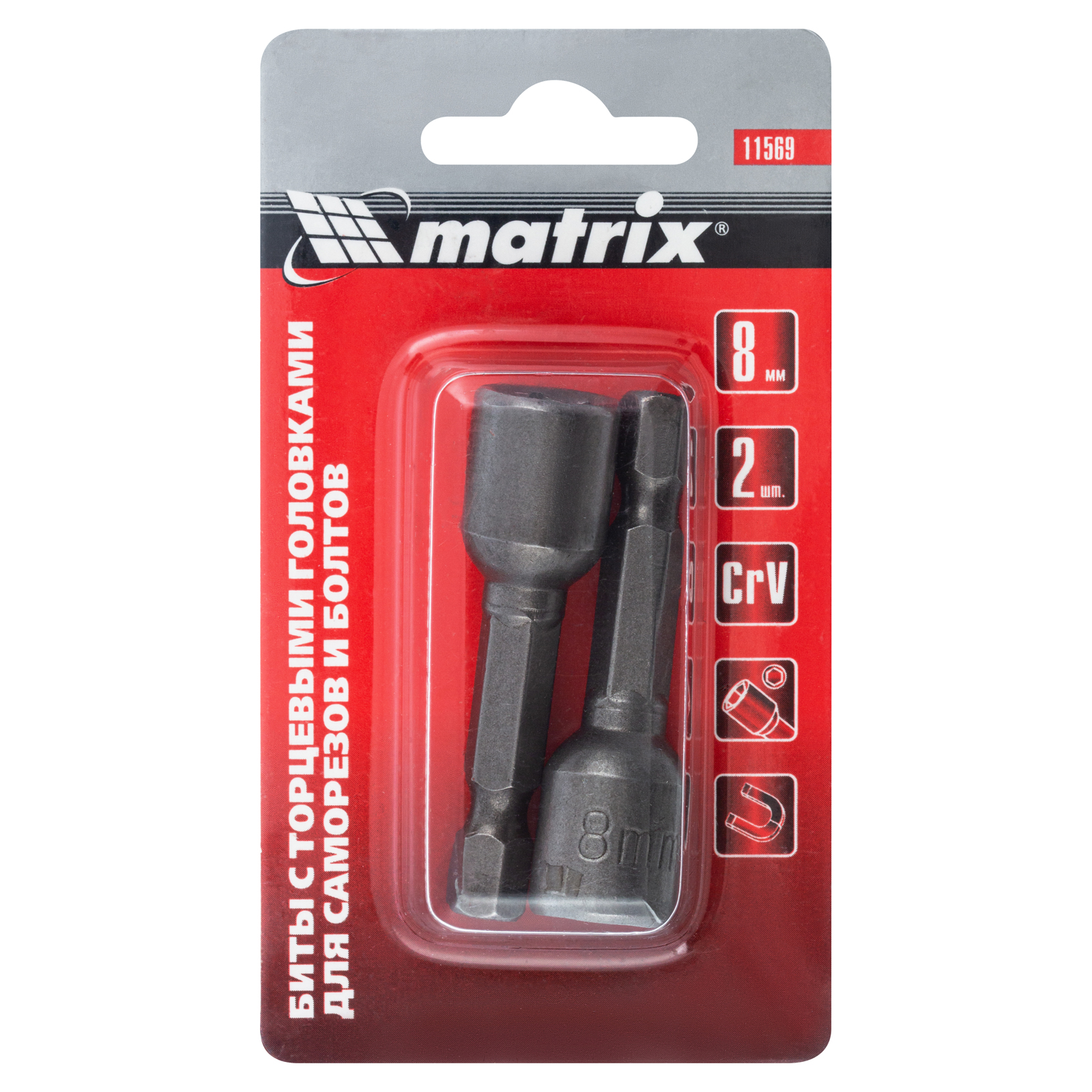 Биты с торцевыми головками 8 мм, 45 мм, 2 шт. Matrix