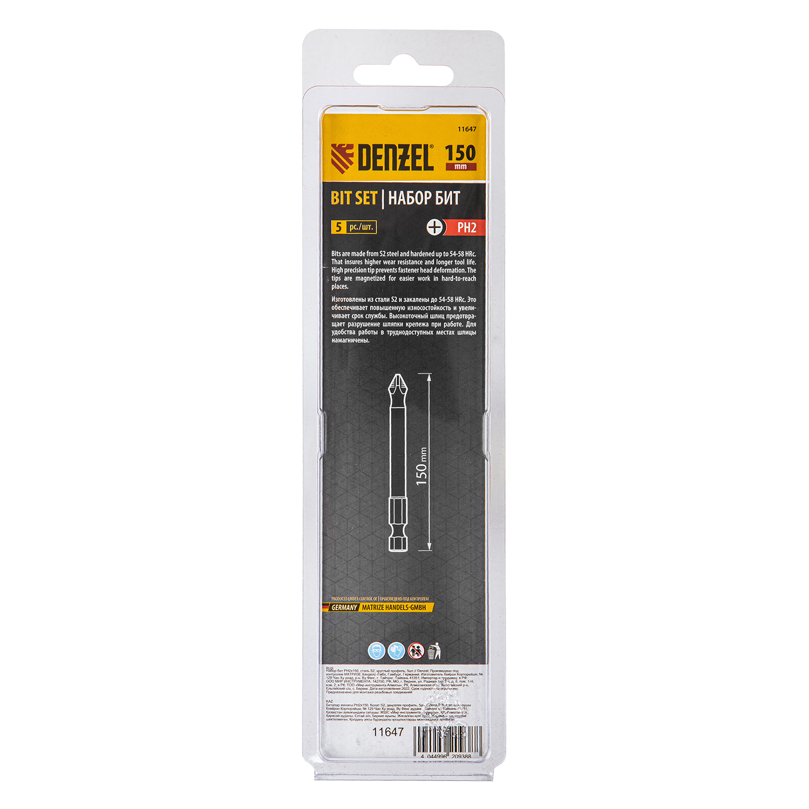 Бита Ph2х150, сталь S2, цилиндр., 5шт. е 6,3 Denzel