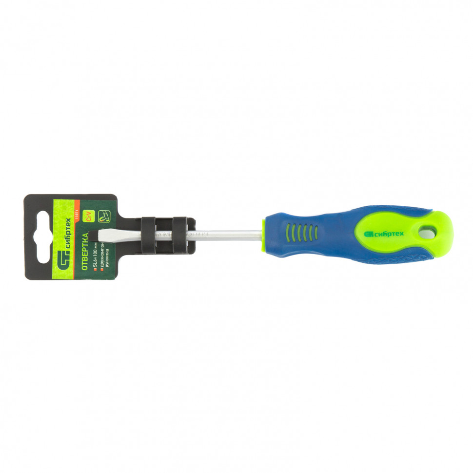 Отвертка, Sl6 х 100 мм, Crv, двухкомпонентная рукоятка сибртех