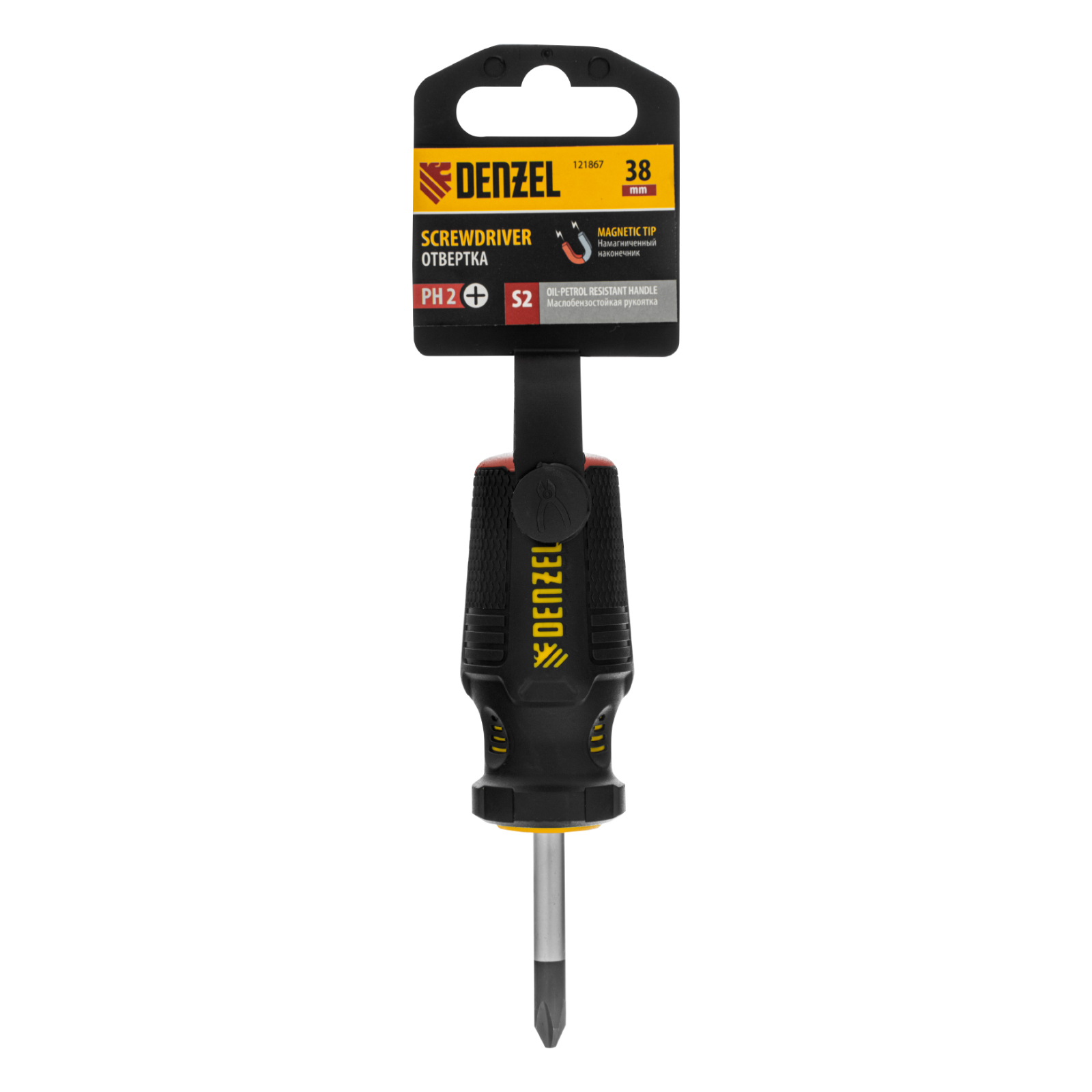 Отвертка, Ph2х38 мм, S2, 3к рукоятка Denzel