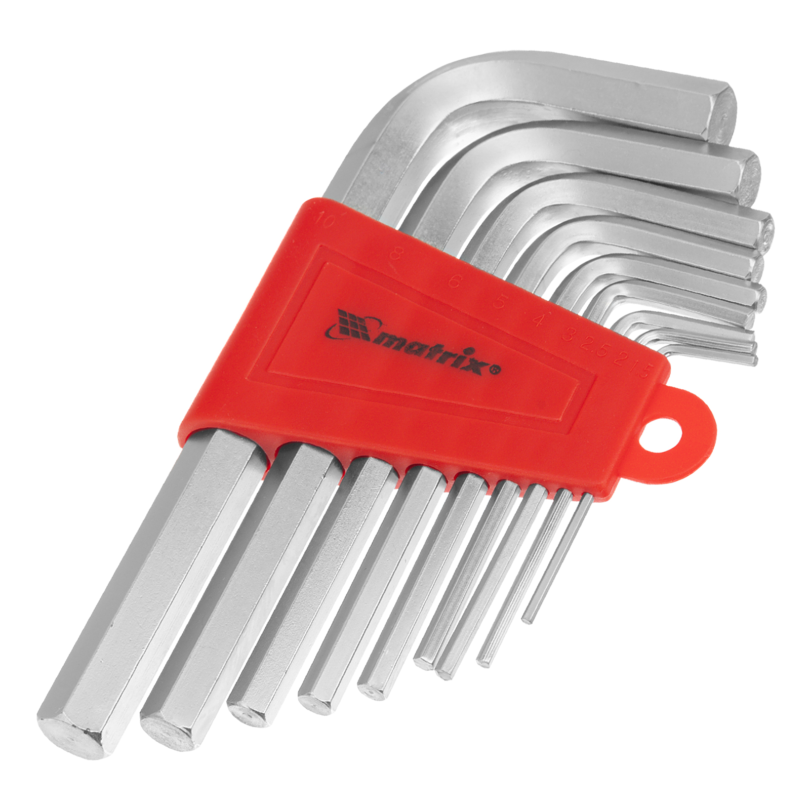 Набор ключей имбусовых Hex, 1.5-10 мм, Crv, 9 шт, коротких, с сатиновым покрытием Matrix