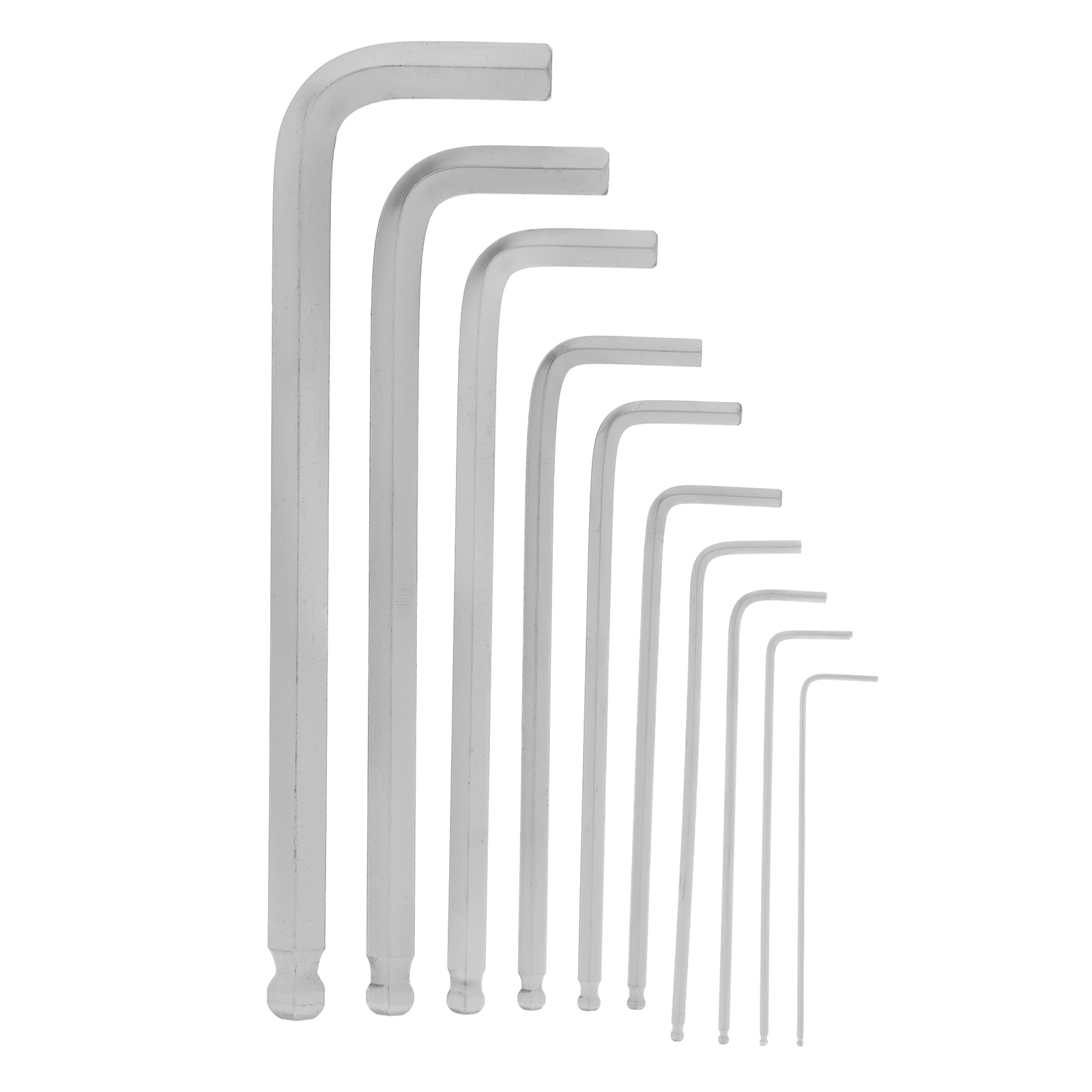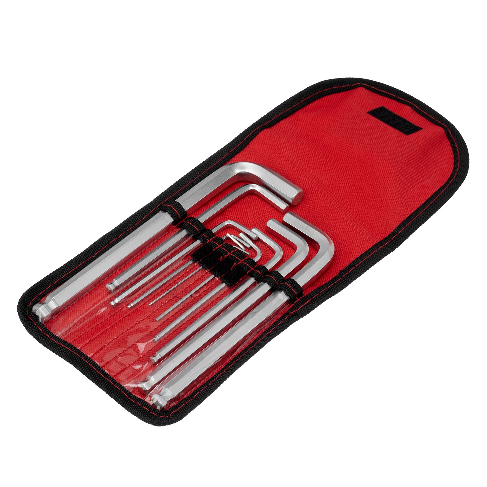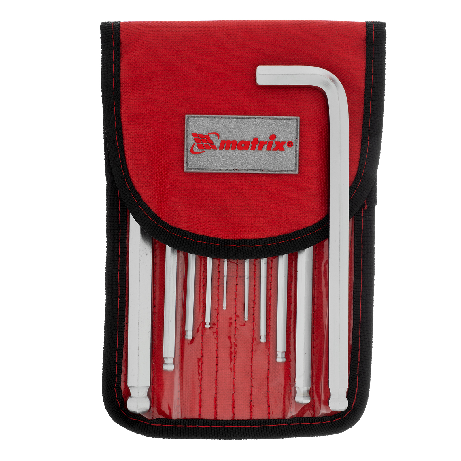 Набор ключей имбусовых Hex, 1.5-12 мм, Crv, 10 шт, удлиненных, шарообразный наконечник, с сатинированным покрытием, чехол Matrix