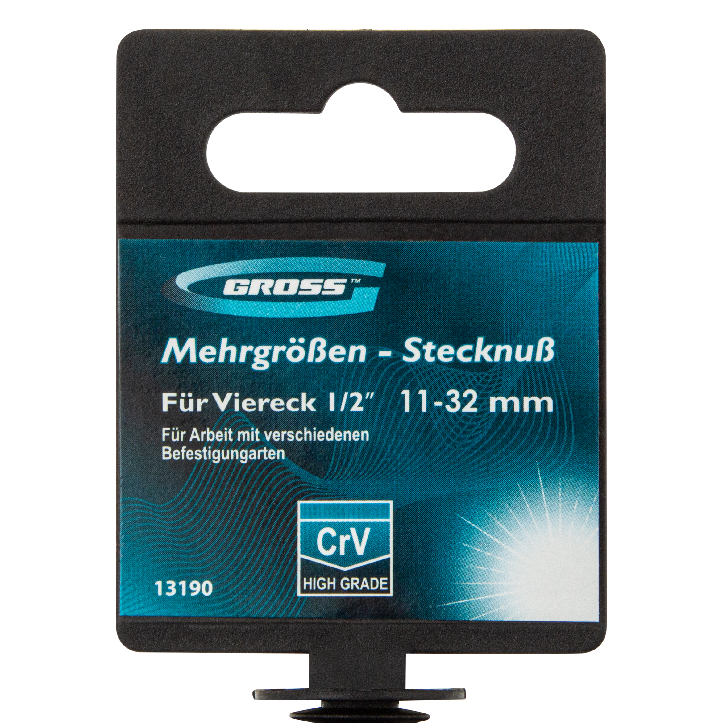 Головка торцевая многоразмерная 11-32 мм, под квадрат 1/2, Crv, хромированная Gross