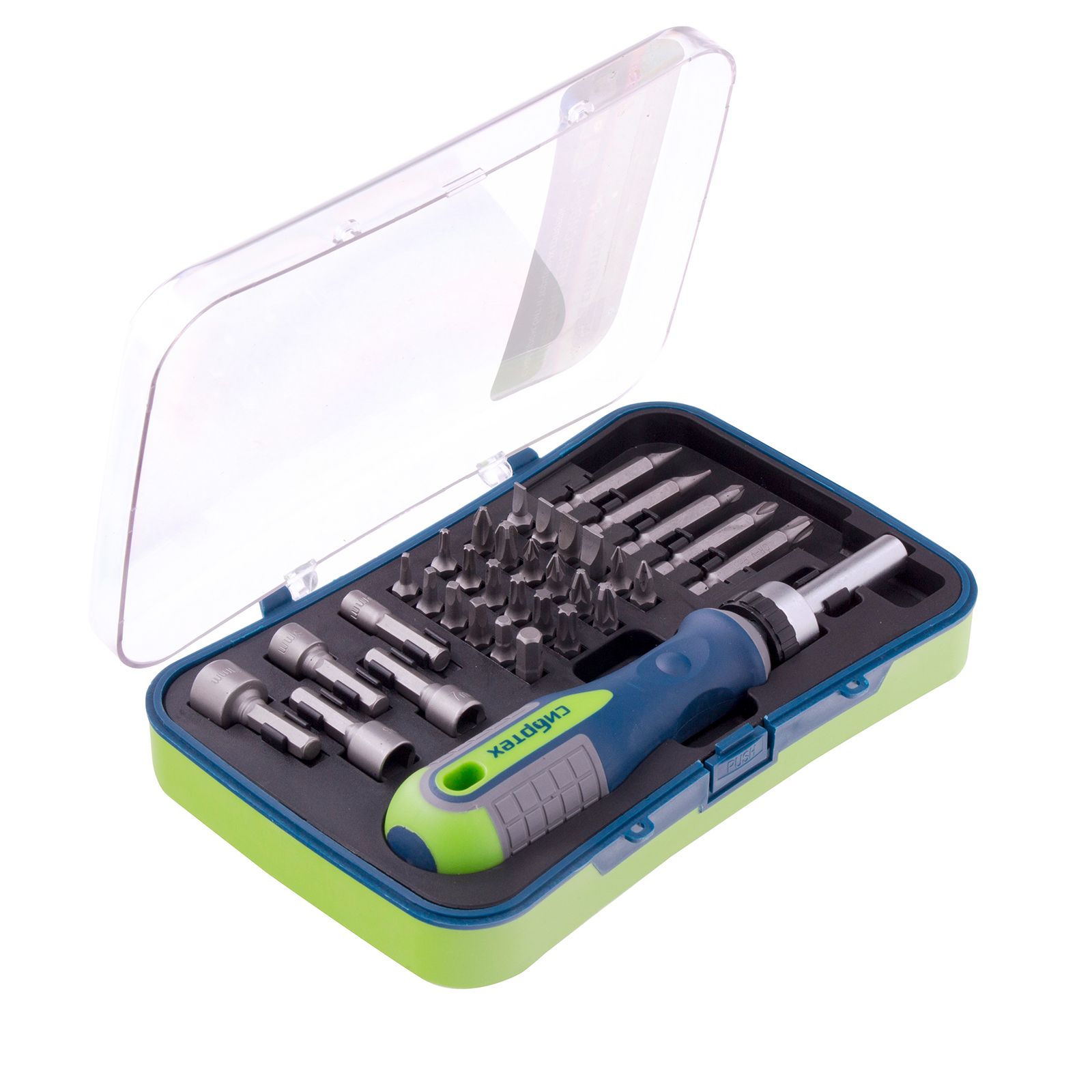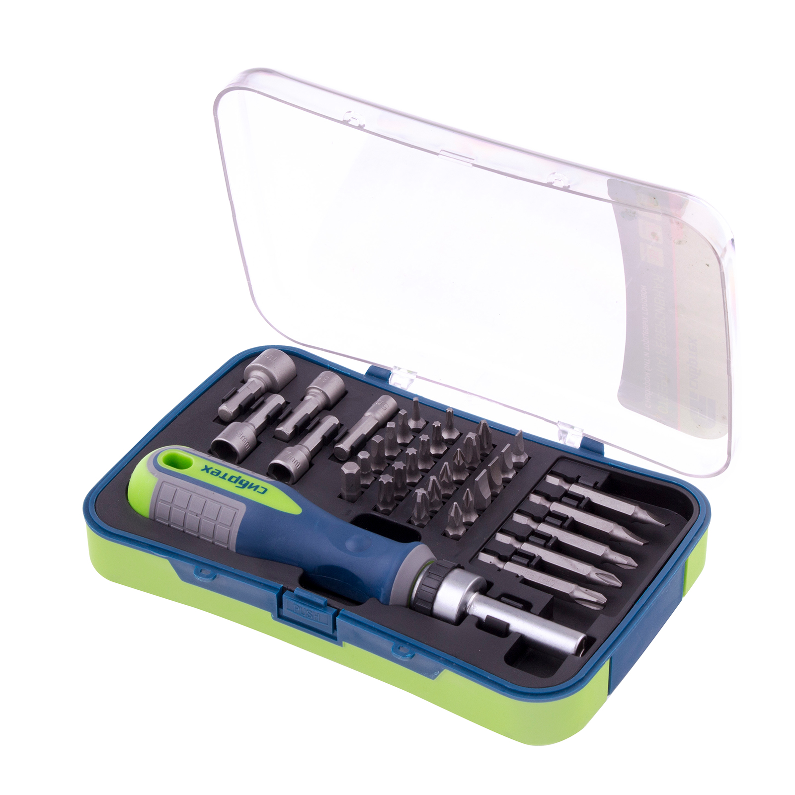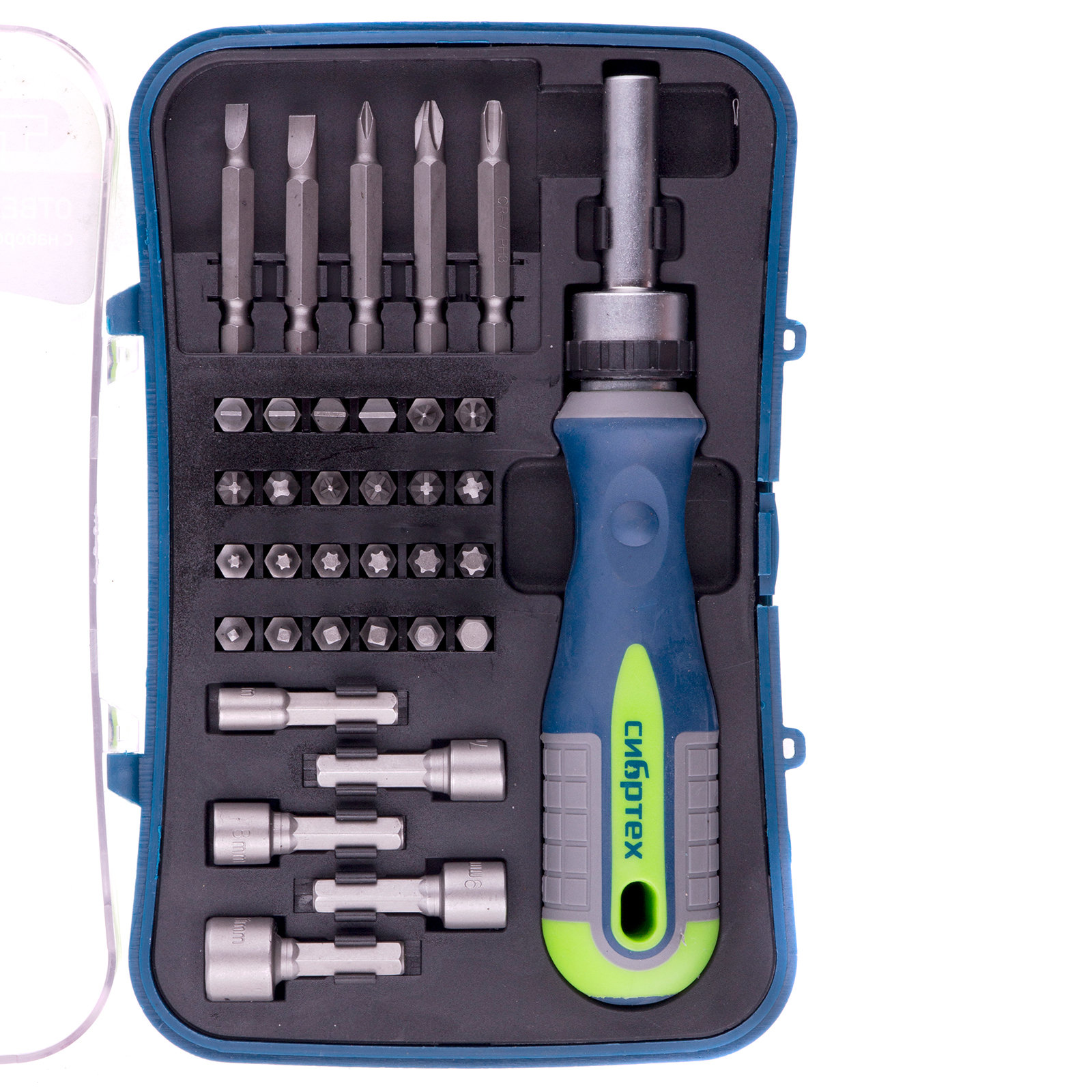 Отвертка реверсивная с набором бит и торцевыми головками, 35 шт, crv сибртех. Бренд: Сибртех Особенности: торцевые головки Типы шлицов в набор: SLu002FPHu002FPZu002FHEXu002FTORX Страна производства: Китай Тип упаковки: пластиковый кейс Длина в упаковке, мм: 200 Ширина в упаковке, мм: 135 Вес (брутто), кг: 0.73 Пластиковый кейс: 1 шт Биты 25 мм: РН0, РН1, РН2, РН3, SL4, SL5, SL6, SL7, PZ0, PZ1, PZ2, PZ3, H4, H6, T10, T15, T20, T25, T27, T30, H4, H6, S0, S1, S2, S3: 26 шт Отвертка реверсивная: 1 шт Реверсивная отвертка с набором бит и торцевыми головками Сибртех 13337, 35 инструментов, CrV, станет незаменимым помощником для частных мастеров при проведении ремонтных и монтажных работ. Удлиненные биты облегчают монтаж/демонтаж крепежных элементов в труднодоступных местах, торцевые головки позволяют работать с гайками, болтами, кровельными саморезами, имеющими внешний шестигранник и т.д. Преимущества Насадки и стержень отвертки изготовлены из хромованадиевой стали — прочного и износостойкого материала. Функция реверса обеспечивает удобство и высокую эффективность работы. Набор включает насадки PH, PZ, SL, HEX и TORX популярных размеров, что делает его универсальным. Двухкомпонентная рукоятка с антискользящим эффектом хорошо ложится в руку. Благодаря пластиковому кейсу набор удобно хранить и можно брать с собой. На рукоятке отвертки-держателя есть отверстие для подвесного хранения.  развернуть описание ▼