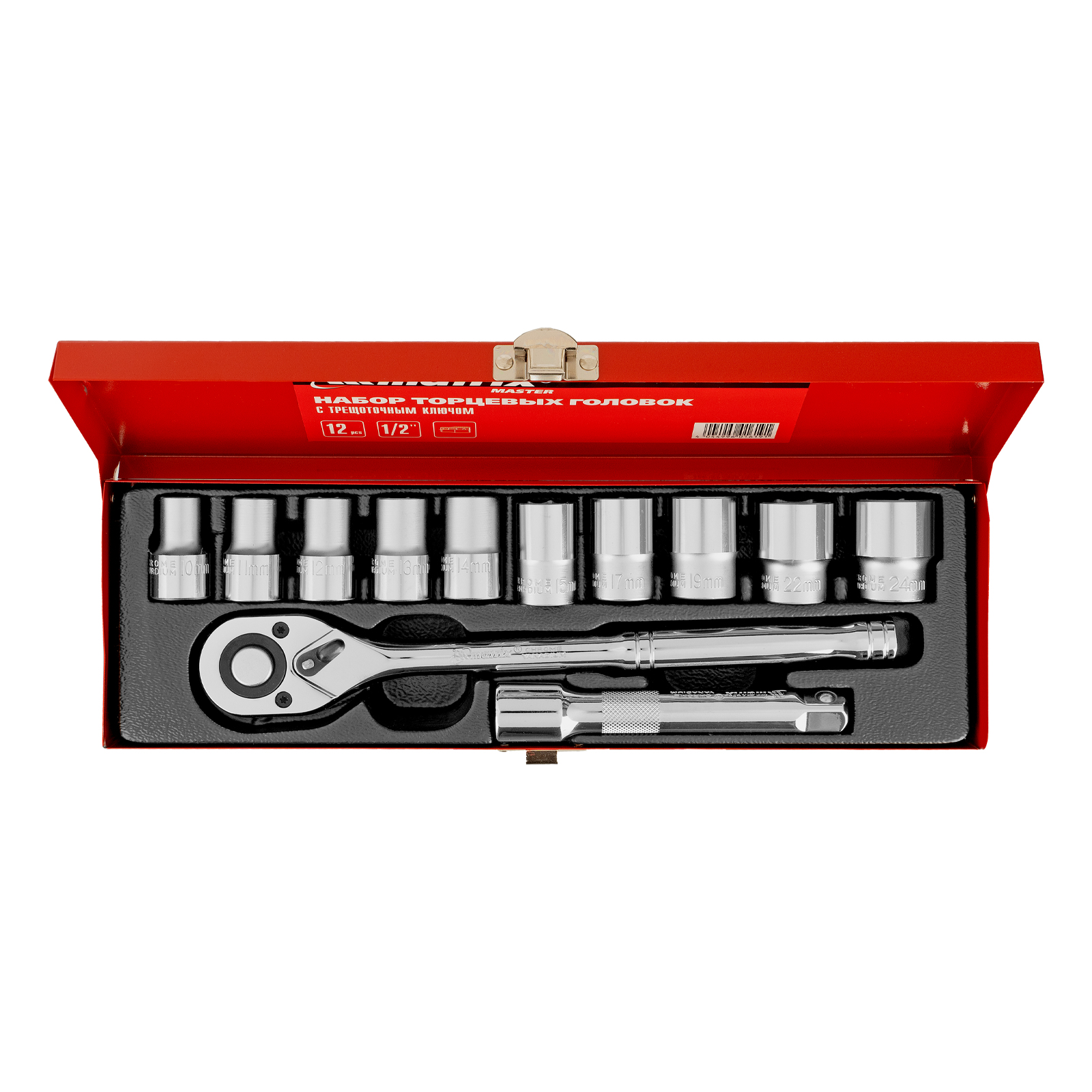Набор торцевых головок, 1/2, головки 10 - 24 мм, с трещот. ключом, 12 предметов matrix. Бренд: Matrix Тип замка: металл Страна производства: Тайвань Длина в упаковке, мм: 115 Ширина в упаковке, мм: 320 Высота в упаковке, мм: 50 Вес (брутто), кг: 2.05 Головки 10, 11, 12, 13, 14, 15, 17, 19, 22, 24: 10 шт Кейс: 1 шт Набор торцевых головок Matrix 13526 включает в себя торцевые головки размером 10-24 мм с присоединительным квадратом 1/2, трещоточный ключ и удлинитель 125 мм. Инструменты служат для работы с резьбовыми соединениями и будут полезны как дома, так и в автомастерской. Преимущества Прочность и долговечность — элементы набора изготовлены из хромованадиевой стали твердостью 42 HRC. Высокие антикоррозионные свойства — хромоникелевое покрытие защищает инструменты от разрушения. Реверс — благодаря специальному переключателю ключ-трещотка может использоваться и для закручивания, и для откручивания крепежей. Удобное хранение и транспортировка — набор упакован в прочный металлический кейс, для каждого предмета предусмотрен свой отсек.  развернуть описание ▼