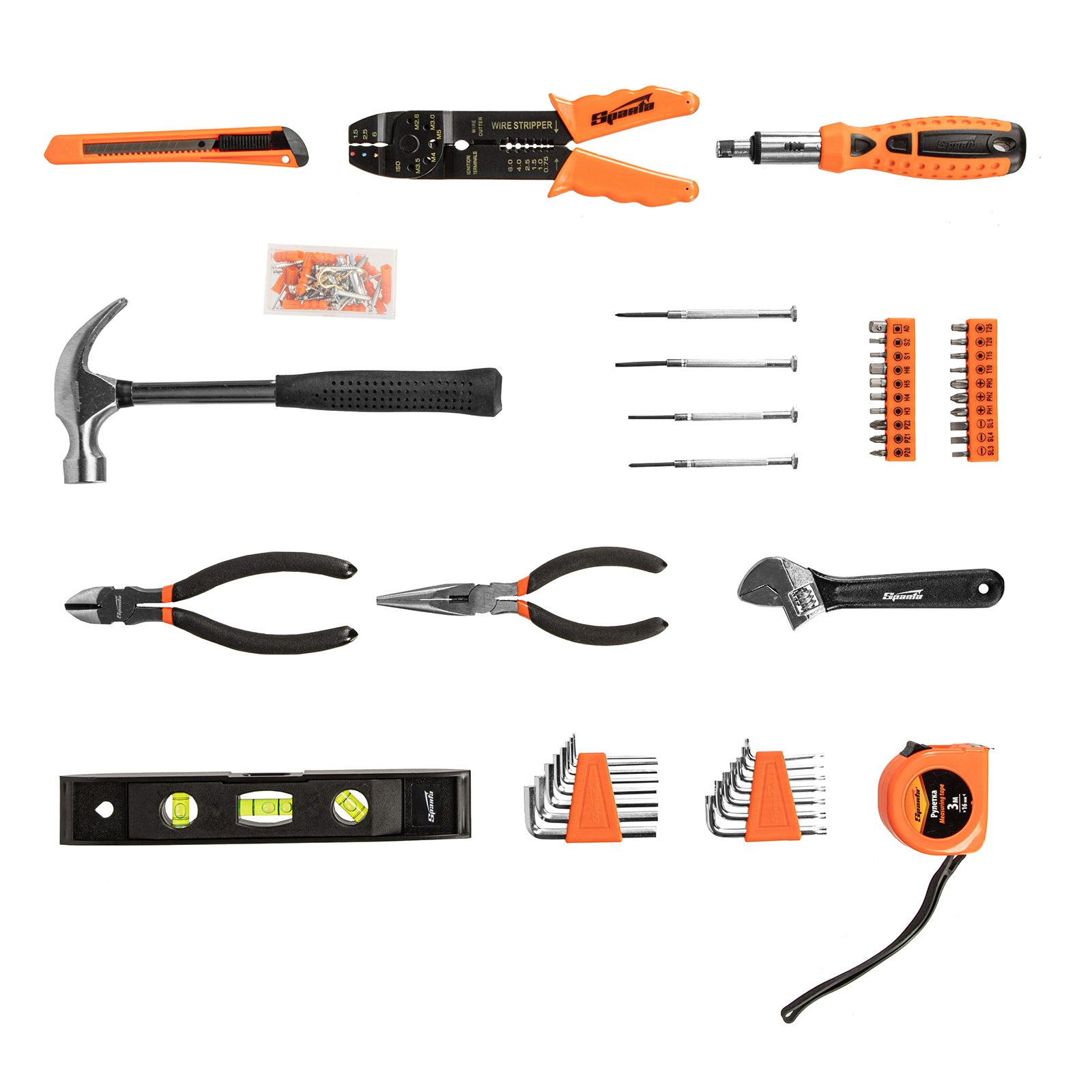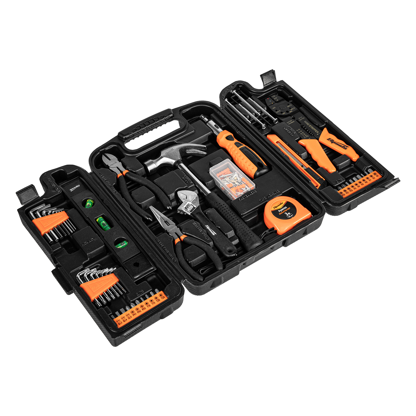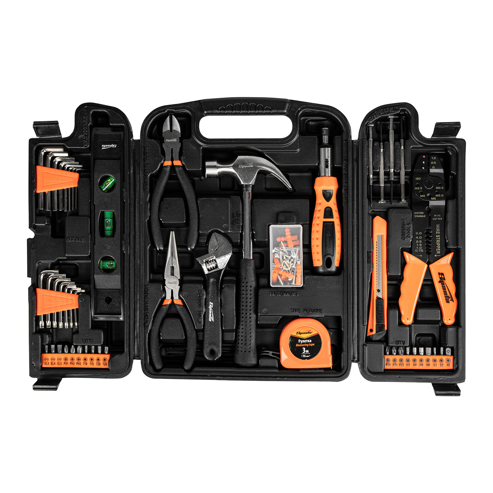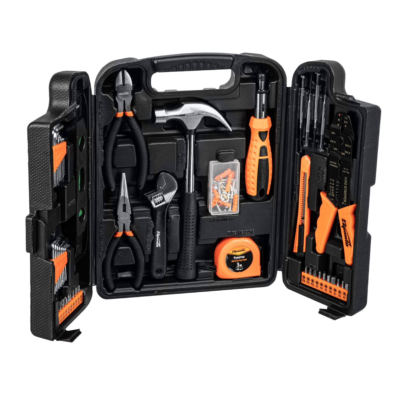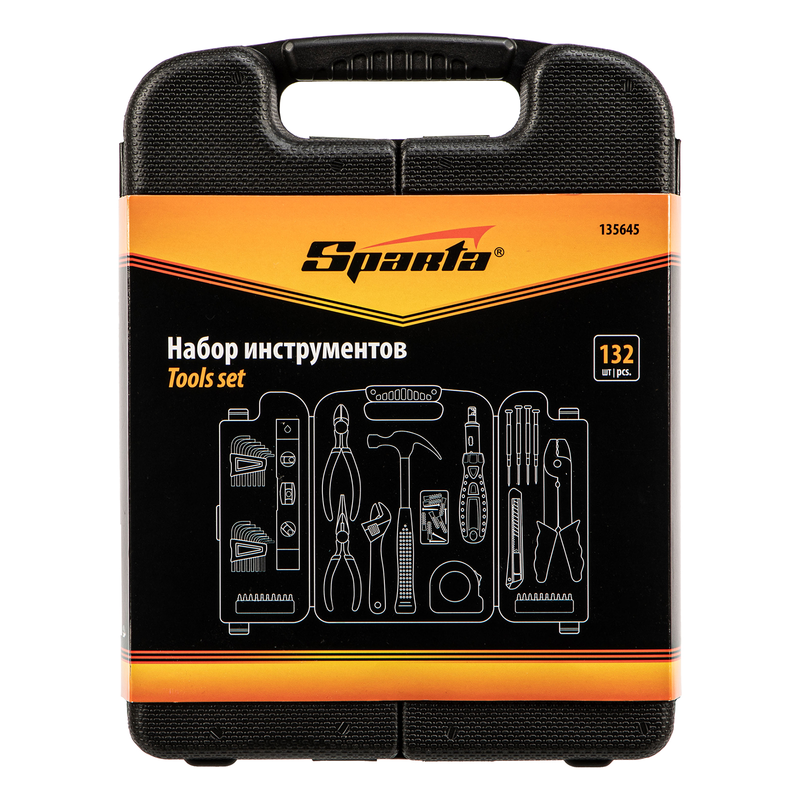 Набор инструментов бытовой, 132 предмета sparta. Бренд: Sparta Тип замка: пластик Страна производства: Китай Тип упаковки: пластиковый кейс Длина в упаковке, мм: 329 Ширина в упаковке, мм: 250 Вес (брутто), кг: 2.39 Набор инструментов Sparta 135645 включает в себя 132 предмета для бытового применения: обжимные клещи, отвертки, в том числе для точных работ, молоток-гвоздодер, бокорезы, строительный уровень, разводной и имбусовые ключи, биты-вставки с адаптером, длинногубцы, рулетку, канцелярский нож, а также набор крепежа. Инструменты оптимально подходят для выполнения слесарно-монтажных работ дома или на даче. Преимущества Износостойкость — инструменты изготовлены из высокопрочной стали и закалены до необходимой твердости. Защита от коррозии — на рабочие поверхности нанесено матовое хромированное покрытие. Удобное хранение и транспортировка — инструменты упакованы в пластиковый кейс с ложементом.  развернуть описание ▼