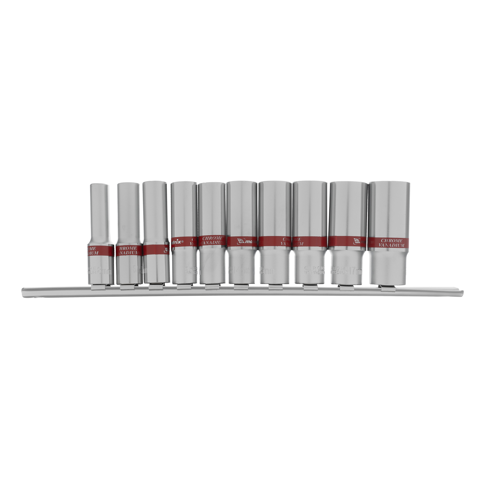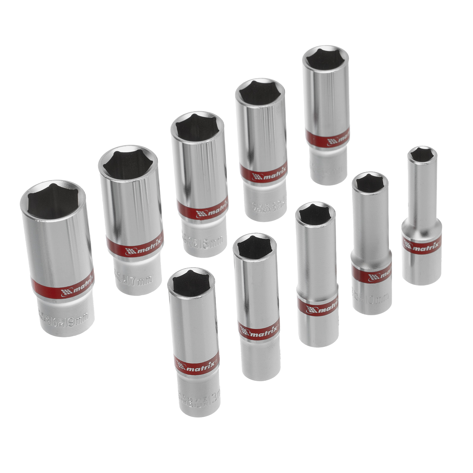 Набор удлиненных торцевых головок 3/8, 6 гранные, Crv, 8-19мм, 10 штук Matrix