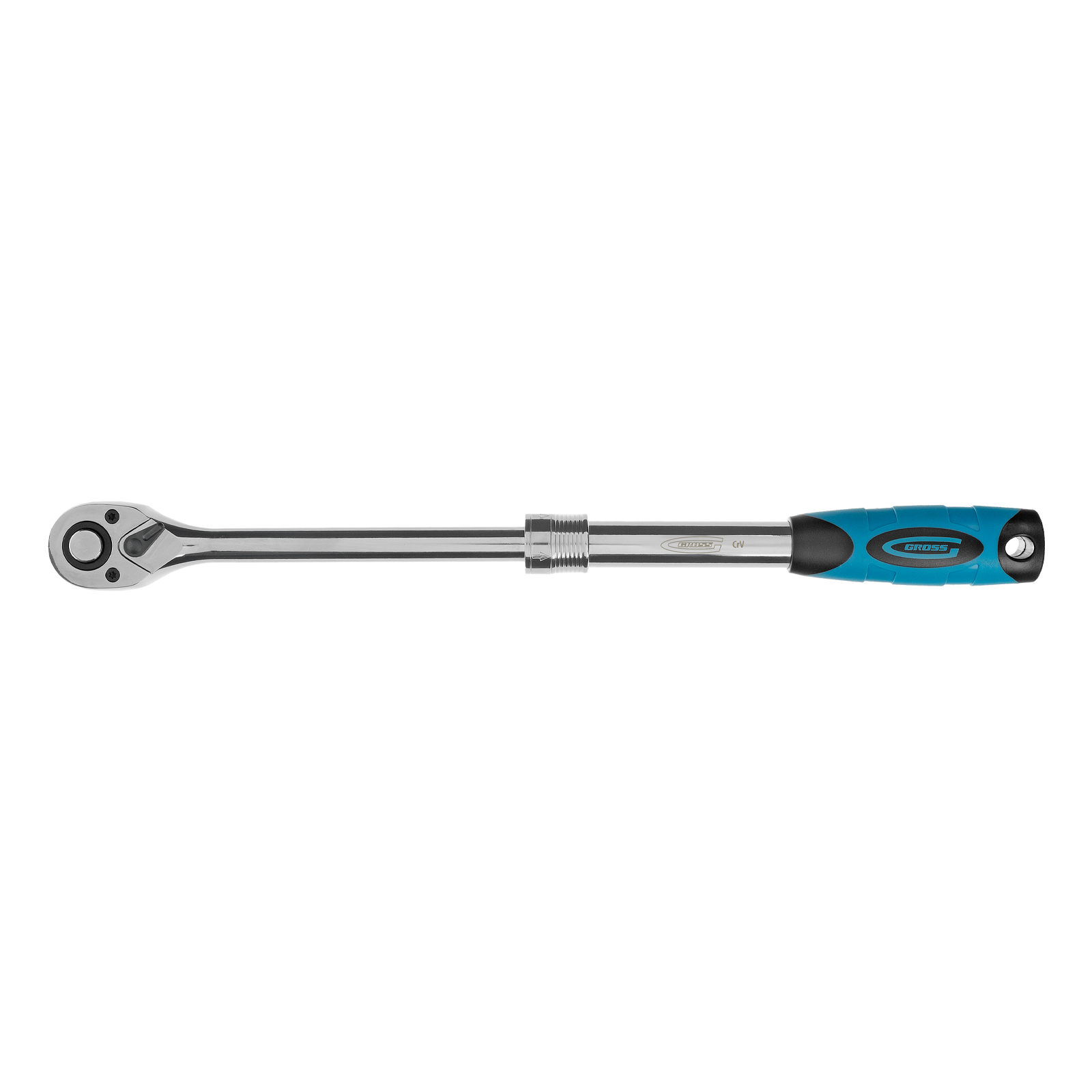 Ключ-трещотка телескопический 1/2, 305-445 мм, Crv, 72 зуба, с быстрым сбросом, хром Gross