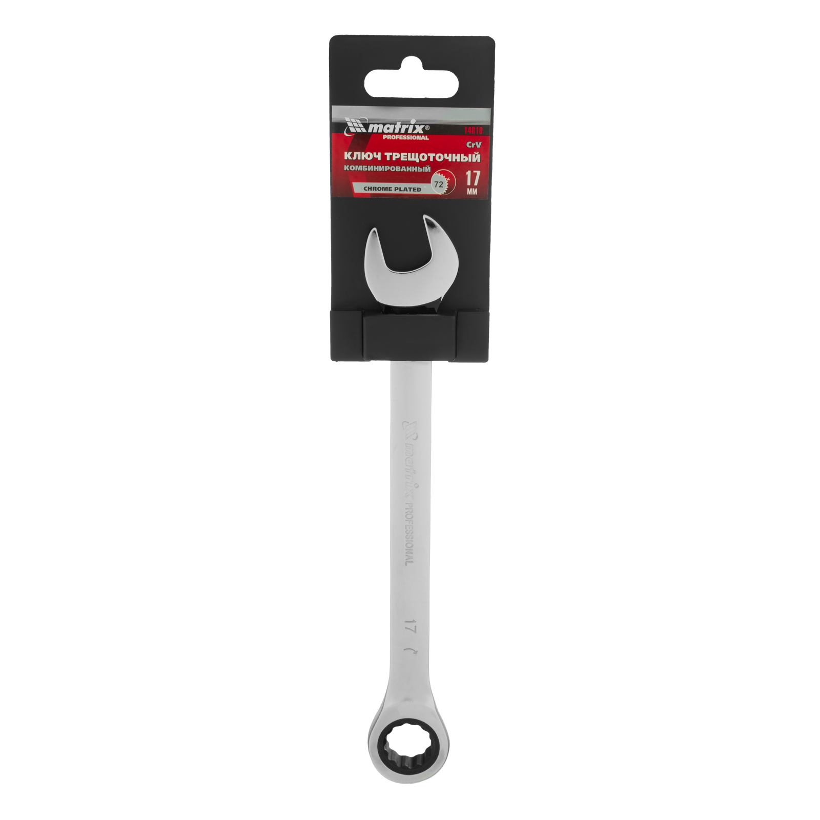 Ключ комбинированный трещоточный, 17 мм, Crv, зеркальный хром Matrix Professional