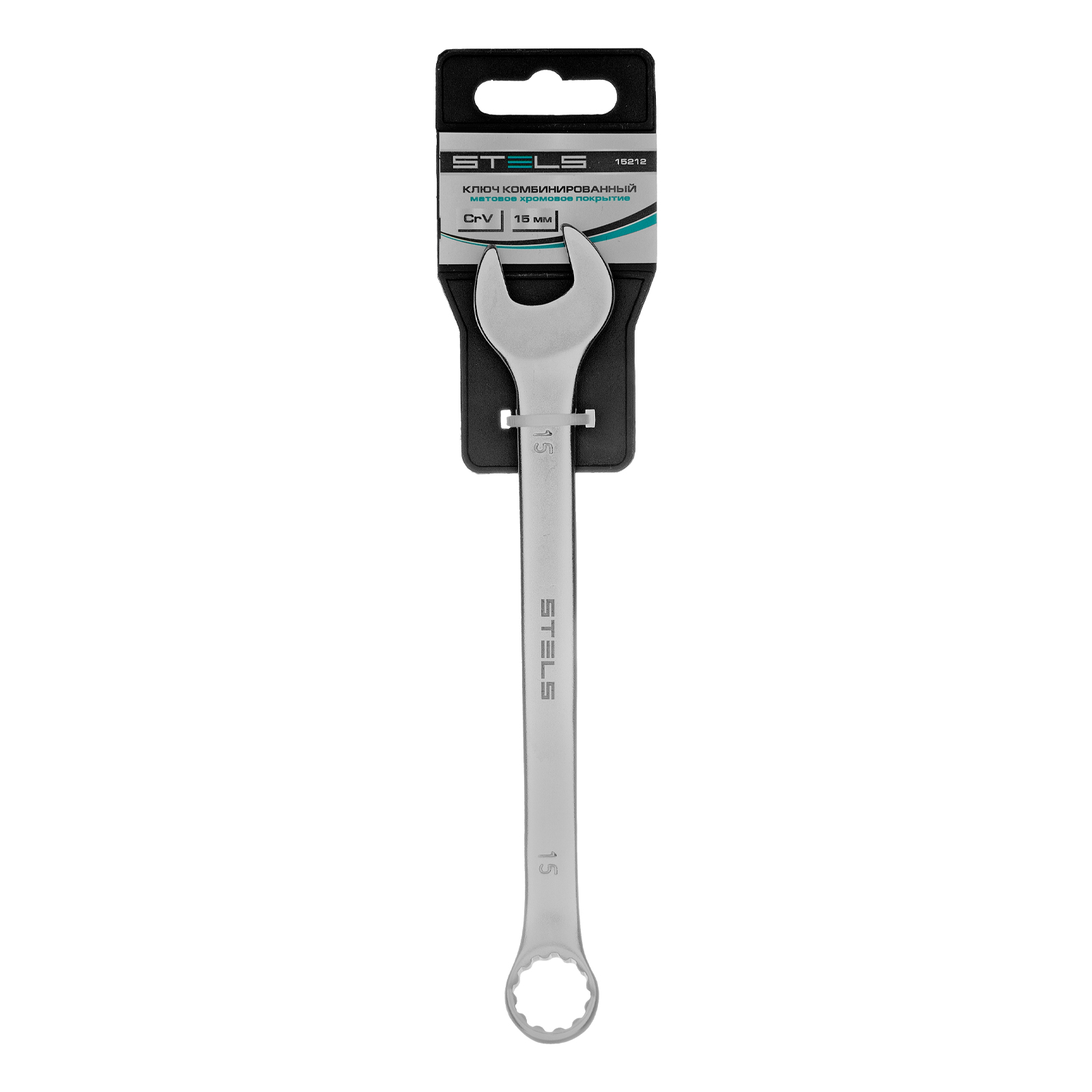 Ключ комбинированный, 15 мм, Crv, матовый хром Stels