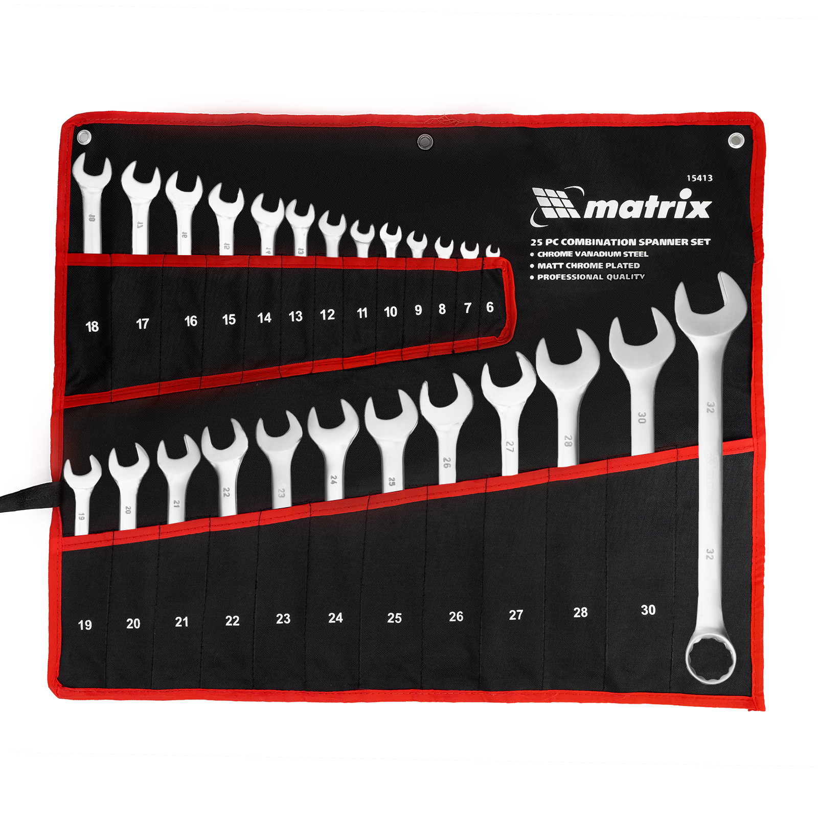 Набор ключей комбинированных, 6-32 мм, 25 шт, Crv, матовый хром Matrix