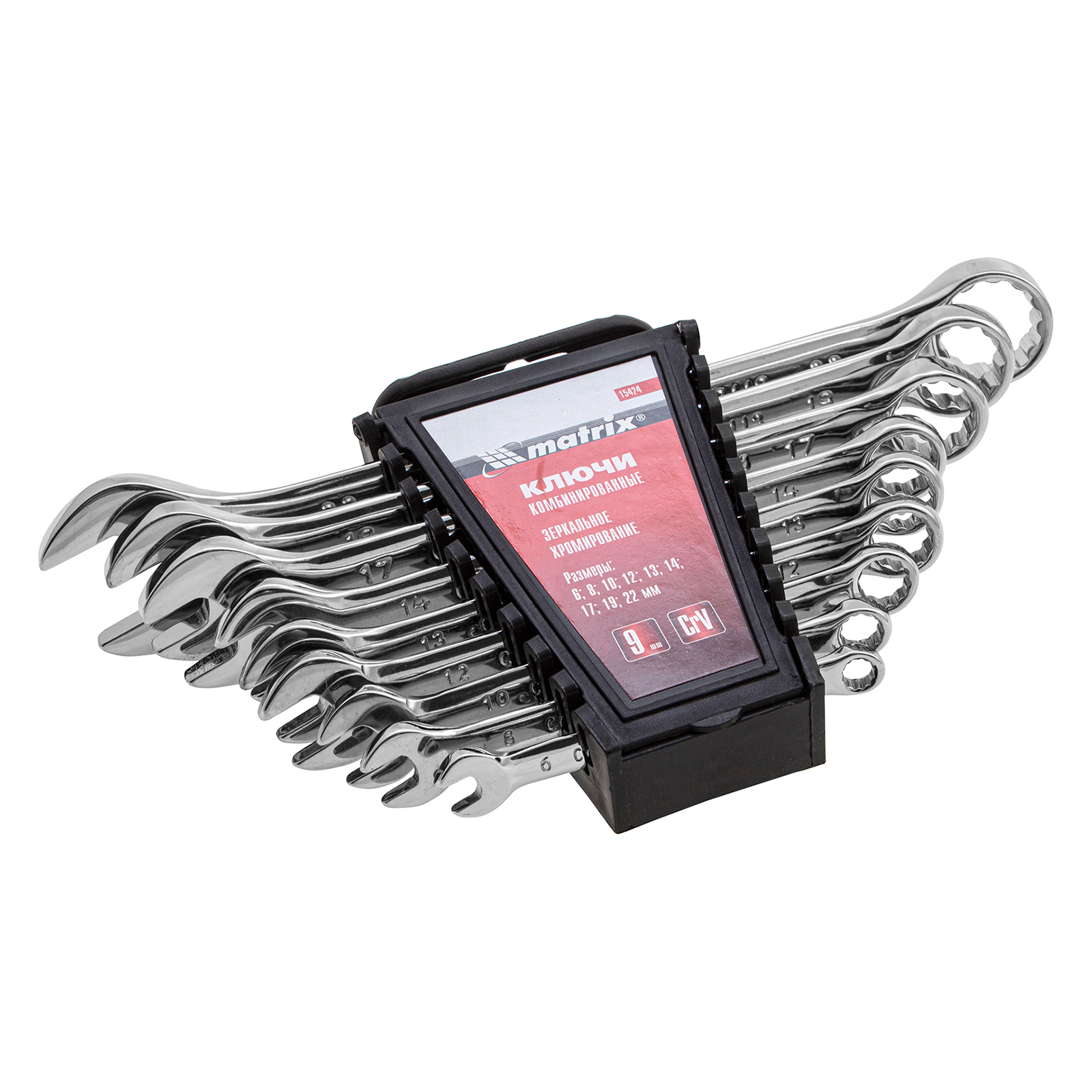 Набор ключей комбинированных, 6-22 мм, 9 шт, Crv, полированный хром Matrix