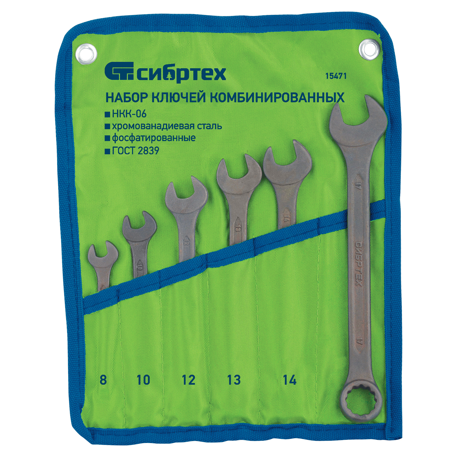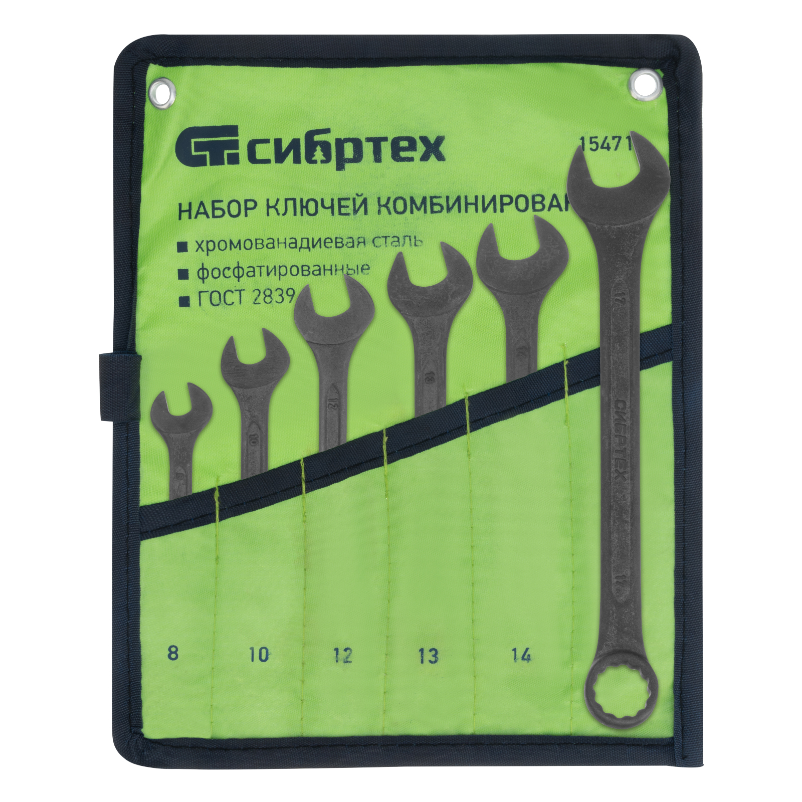 Набор ключей комбинированных, 8 - 17 мм, 6 шт., Crv, фосфатированные сибртех