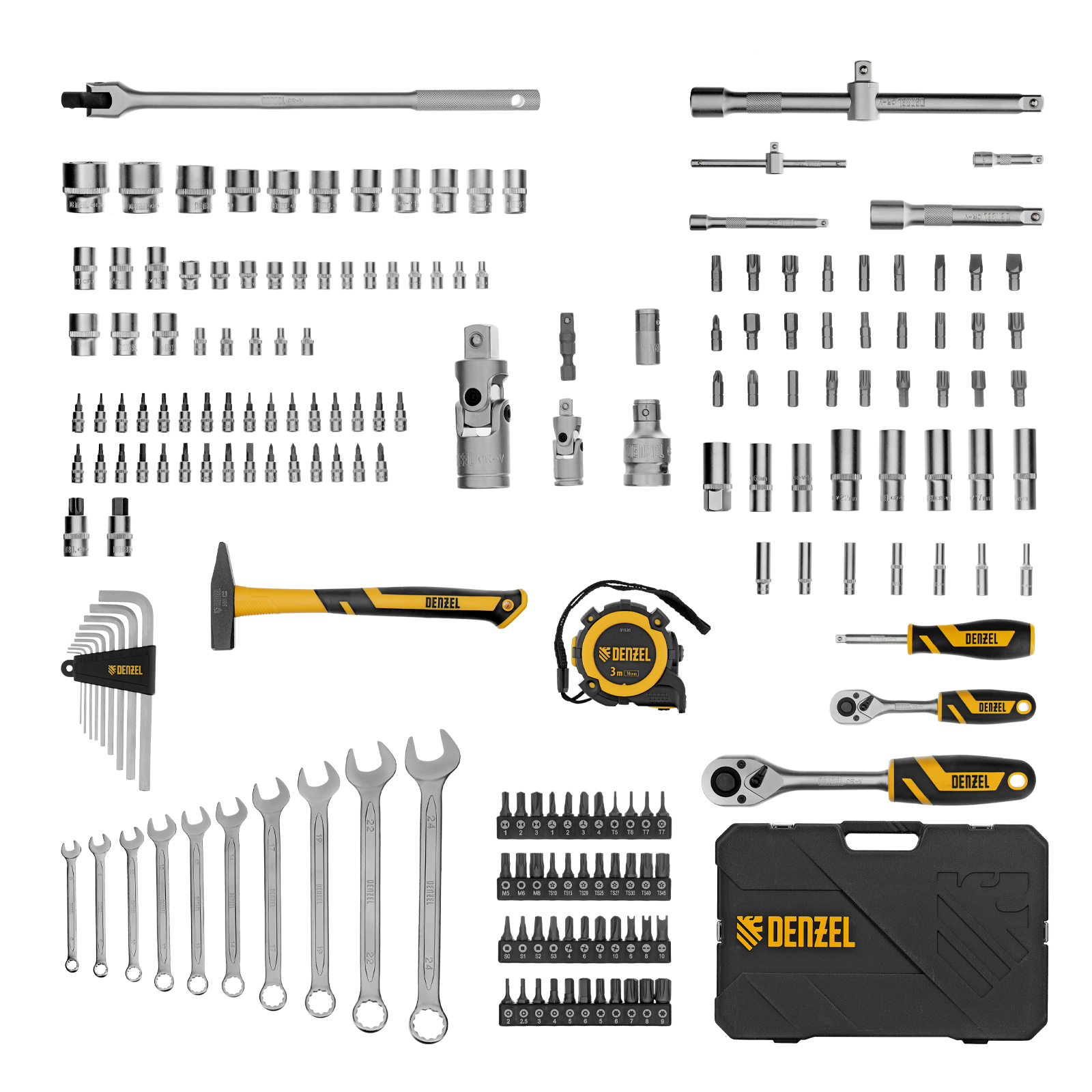 Набор инструментов, 1/2, 1/4, Crv, S2, пластиковый кейс, 194 предмета Denzel