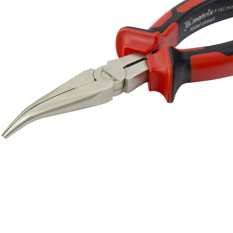Длинногубцы изогнутые Nickel, 160 мм, никелированные, двухкомпонентные рукоятки Matrix