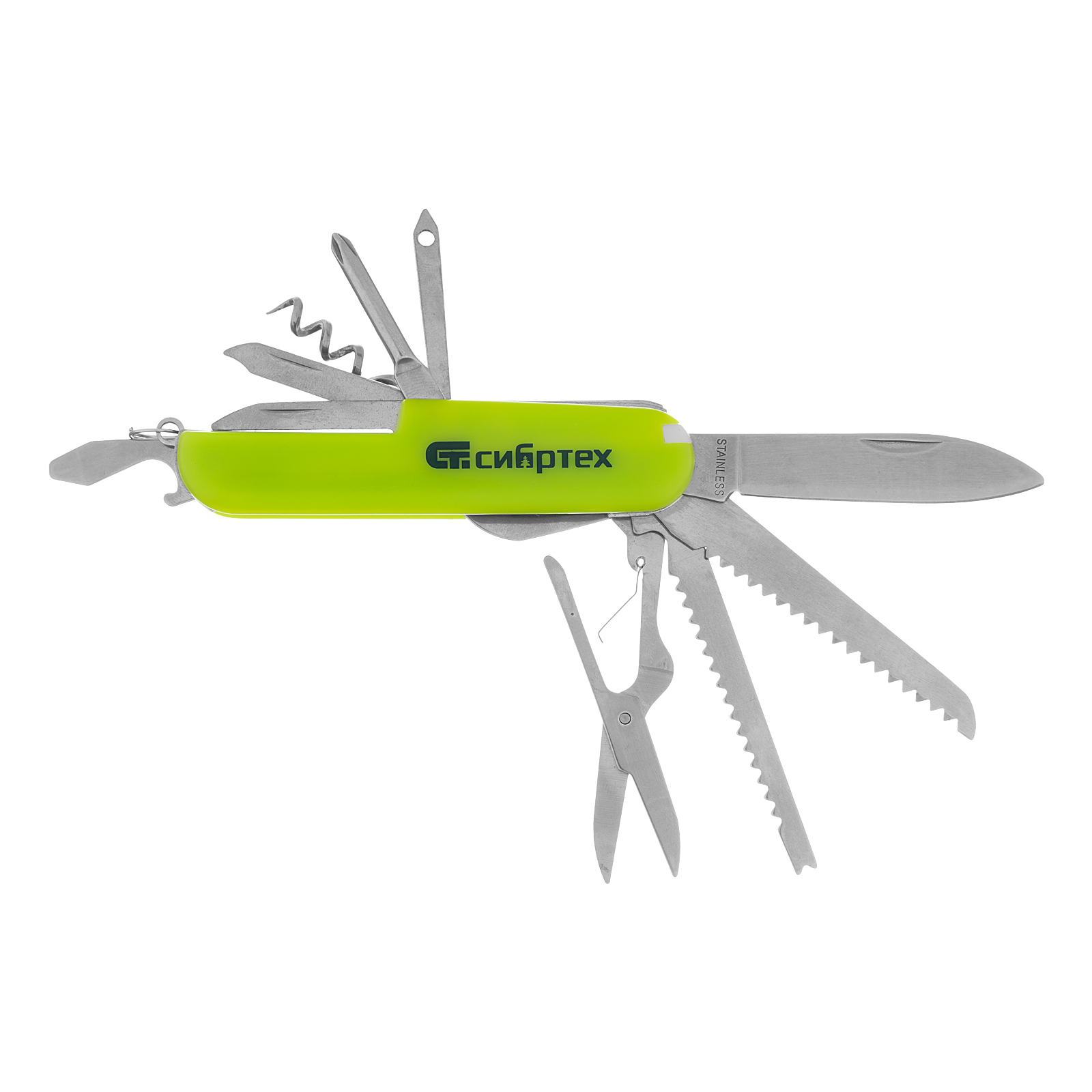 Нож многофункциональный, компактный размер, 15 функций, 90 мм сибртех