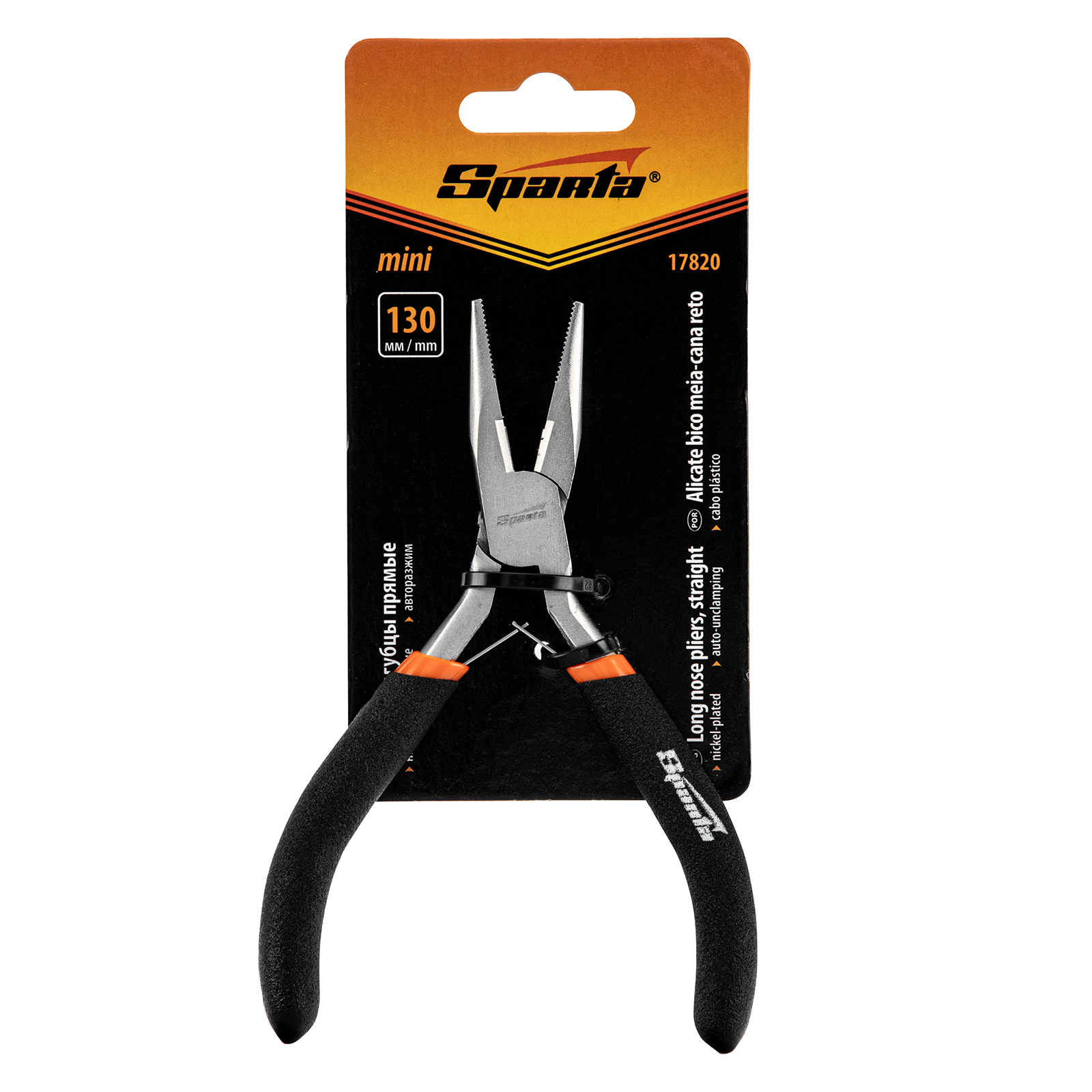 Длинногубцы прямые Mini, 130 мм, никелированные, авторазжим Sparta