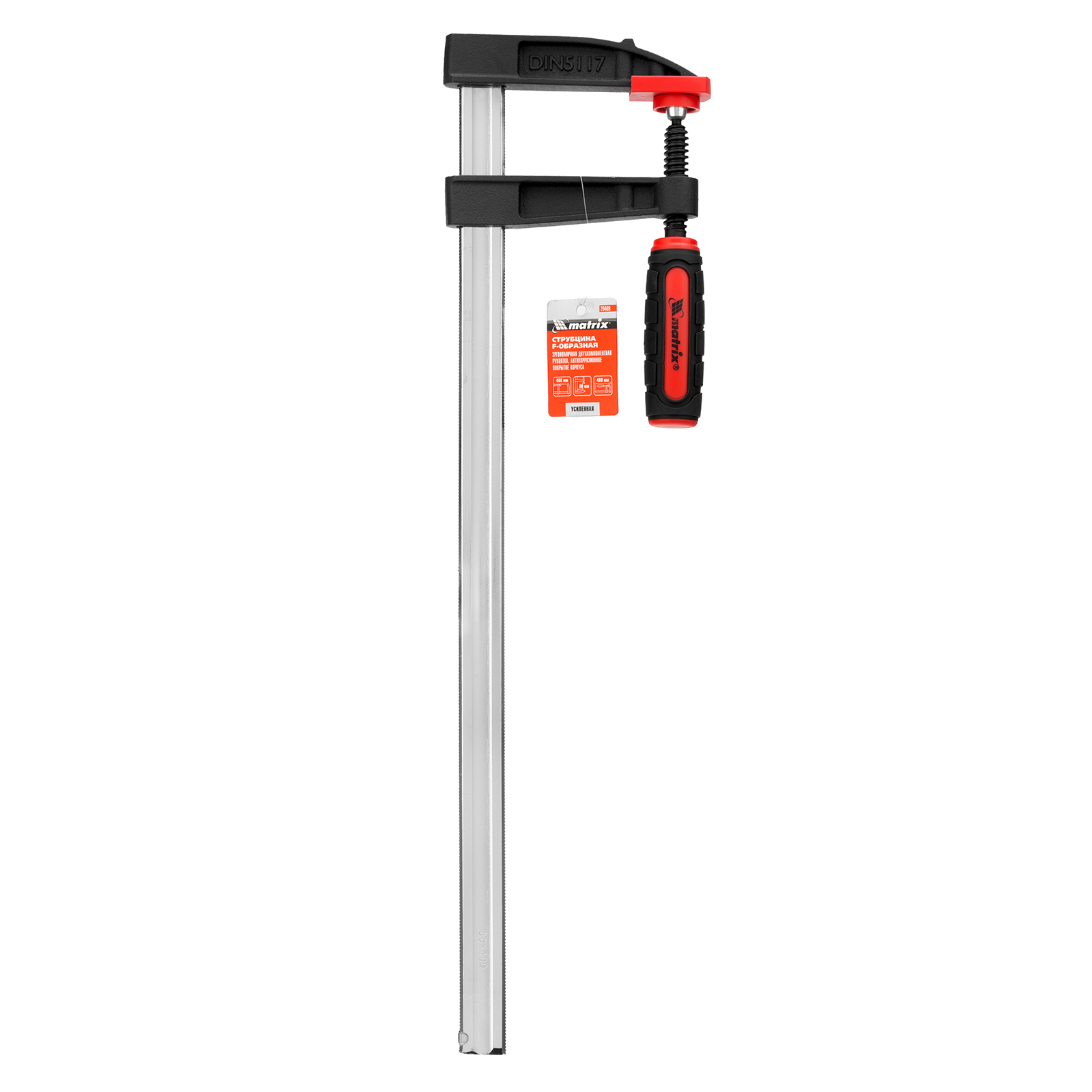 Струбцина f-образная, 400 х 80 х 480 мм matrix. Бренд: Matrix Зажим: винтовой Материал корпуса: металл Страна производства: Китай Глубина зажима, мм: 80 Ширина зажима, мм: 400 Длина в упаковке, мм: 480 Ширина в упаковке, мм: 125 Вес (брутто), кг: 0.89 Струбцина: 1 шт Усиленная F-образная струбцина Matrix 20409 размером 400 х 80 х 480 мм используется для зажима металлических, деревянных и других заготовок для их последующей обработки или сборки. Представляет собой штангу, на которой установлены 2 кронштейна — неподвижный и подвижный. Деталь помещается между ними и прижимается к губкам при помощи винтового зажима с трапециевидной резьбой. Величина захвата регулируется при помощи подвижного кронштейна и может достигать 400 мм. Струбцину используют для проведения слесарных и столярных работ. Металлическая конструкция выдерживает высокую температуру, поэтому инструмент пригодится для выполнения сварочных работ (перед началом необходимо снять пластиковые накладки с губок). Преимущества Фиксация заготовок со значительным усилием — прочная стальная штанга выдерживает повышенные нагрузки. Аккуратная работа — пластиковые накладки на губках предохраняют поверхность детали от повреждения при сильном сжатии. Эргономичность — двухкомпонентная обрезиненная рукоятка с рельефным дизайном не выскальзывает из ладони.  развернуть описание ▼