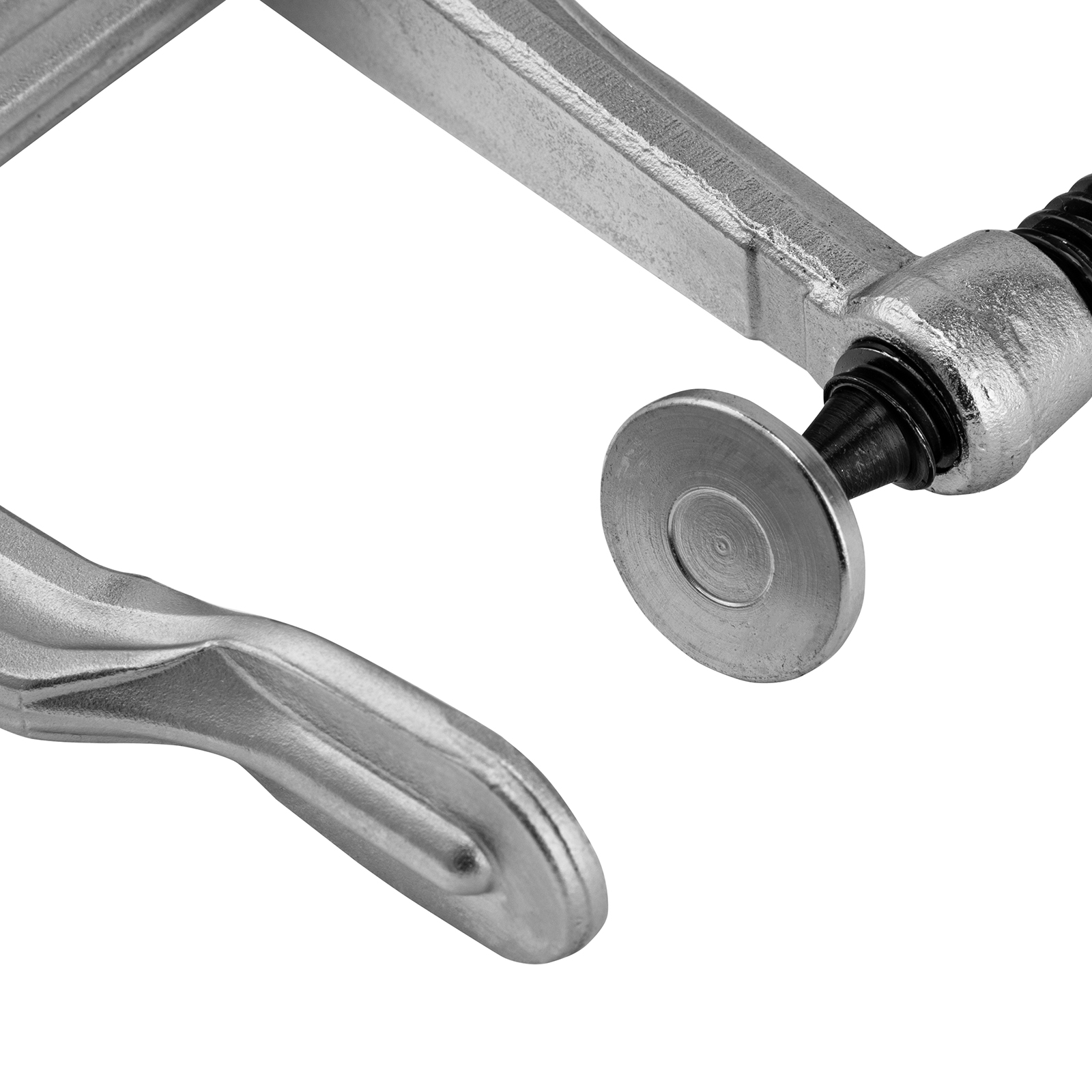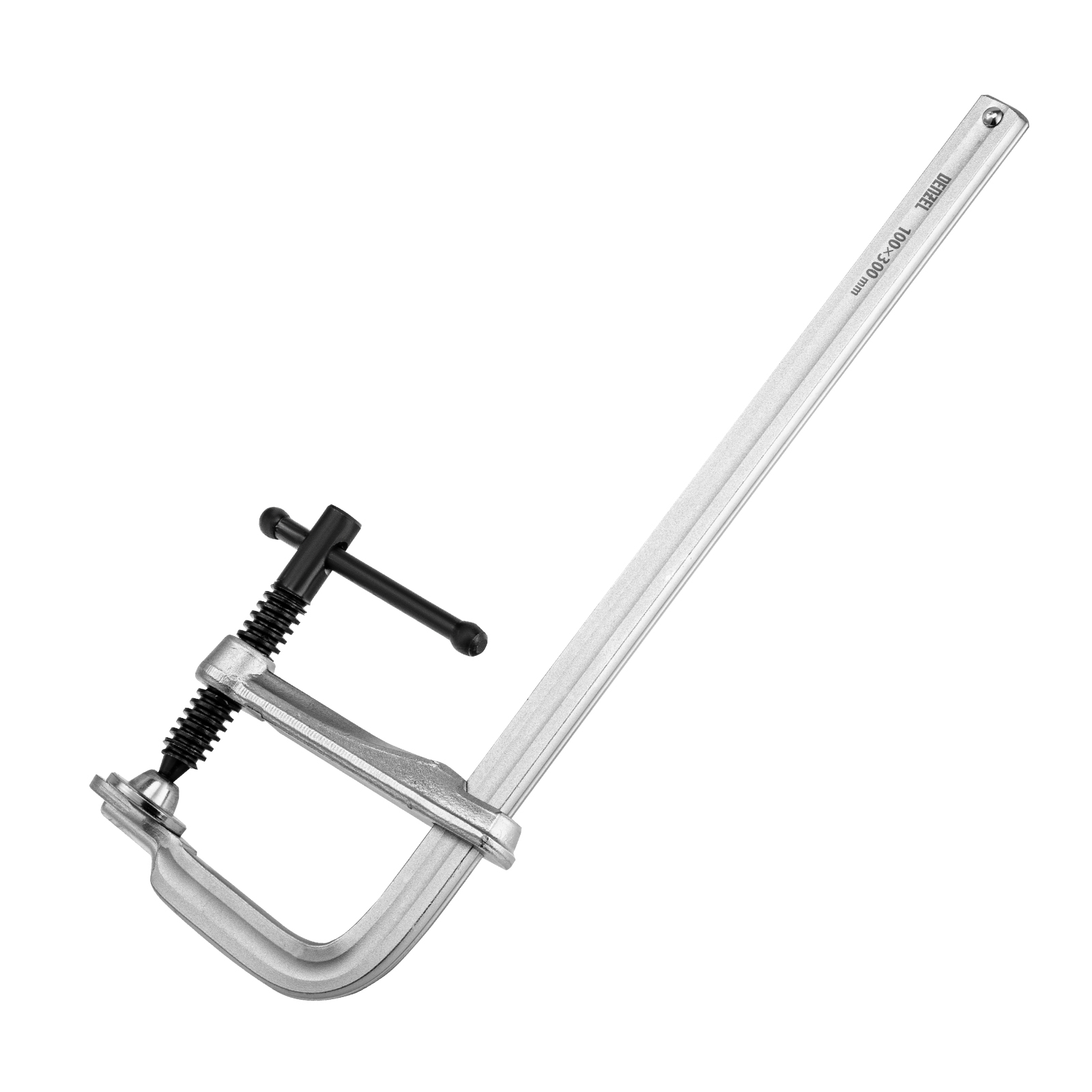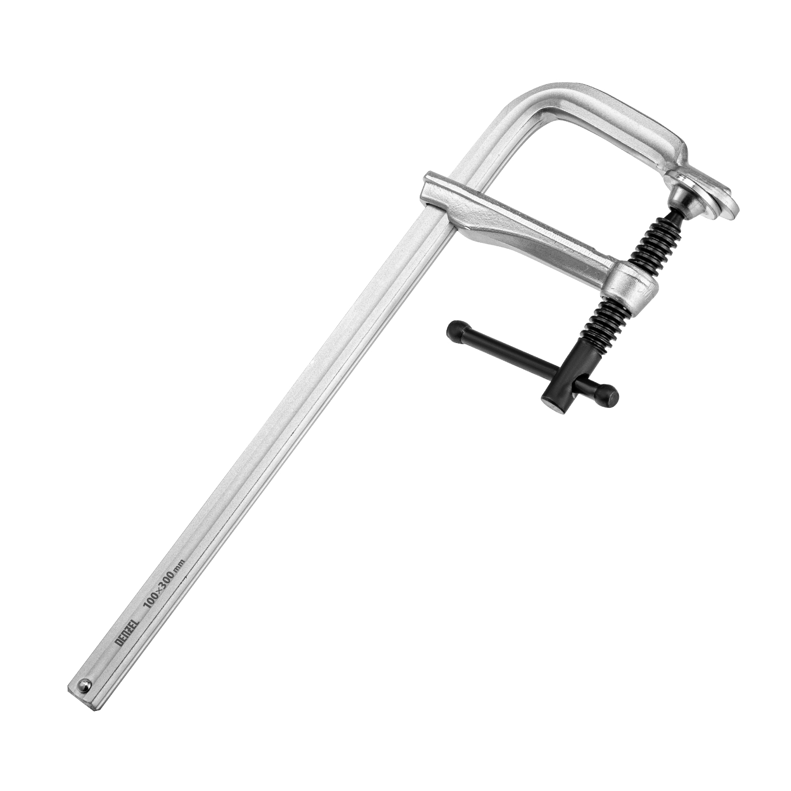 Струбцина f-образная, 100x300мм, кованая denzel. Бренд: DENZEL Зажим: винтовой Материал корпуса: металл Страна производства: Китай Ширина зажима, мм: 300 Длина в упаковке, мм: 445 Ширина в упаковке, мм: 140 Вес (брутто), кг: 1.151 Струбцина: 1 шт Кованая F-образная струбцина Denzel 20470 с глубиной зажима 100 мм, усиленная, предназначена для фиксации деталей шириной до 300 мм и материалов при проведении слесарных, столярных и сварочных работ. Тавровый профиль обеспечивает устойчивость конструкции к изгибу, что позволяет фиксировать детали со значительным усилием. Струбцина подходит для профессионального применения. Преимущества Корпус изготовлен из конструкционной стали 45 методом ковки и закален для большей прочности до твердости 38-42 HRC. Винт с трапециевидной резьбой передает усилие без закусываний и заеданий. Хромированное покрытие надежно защищает струбцину от коррозии.  развернуть описание ▼