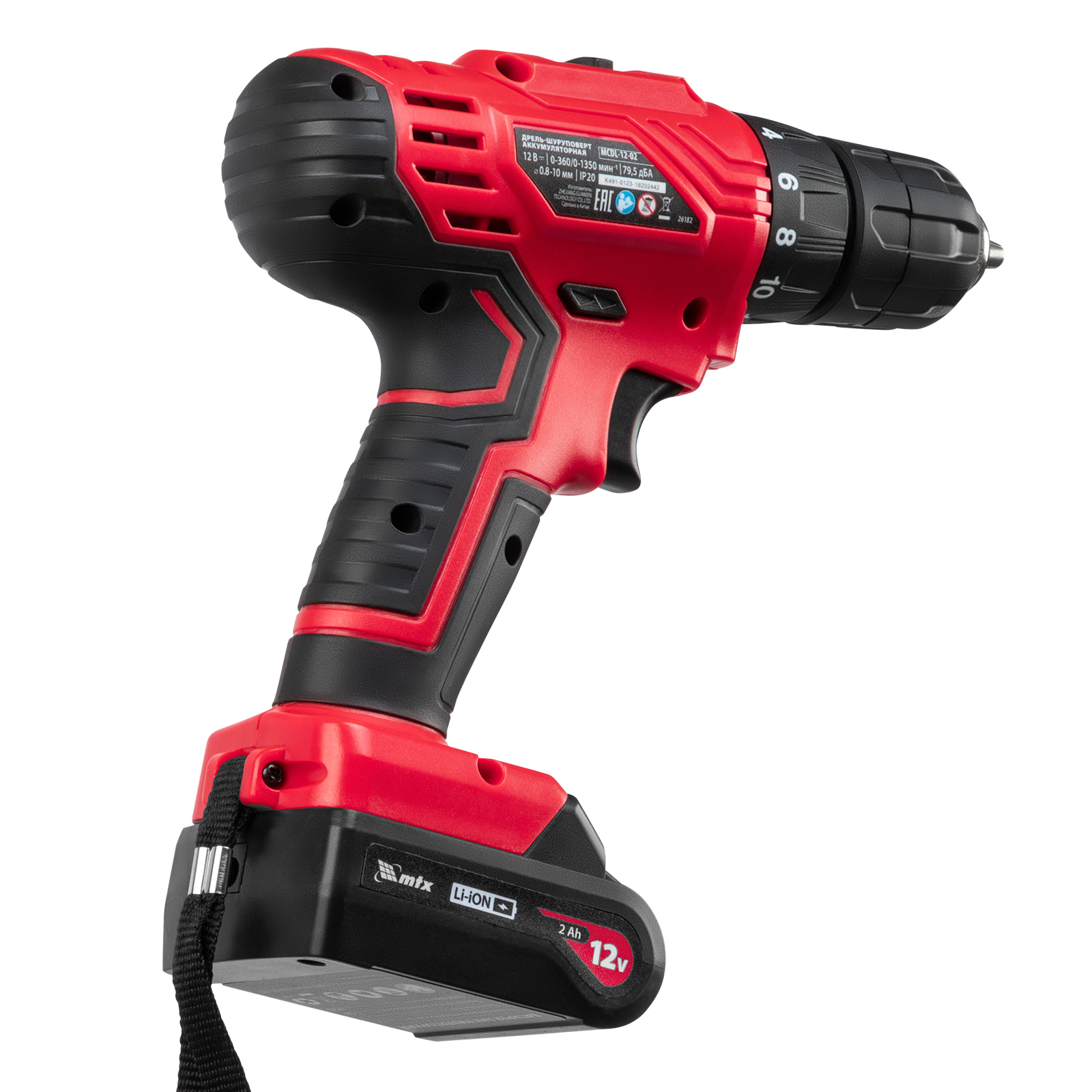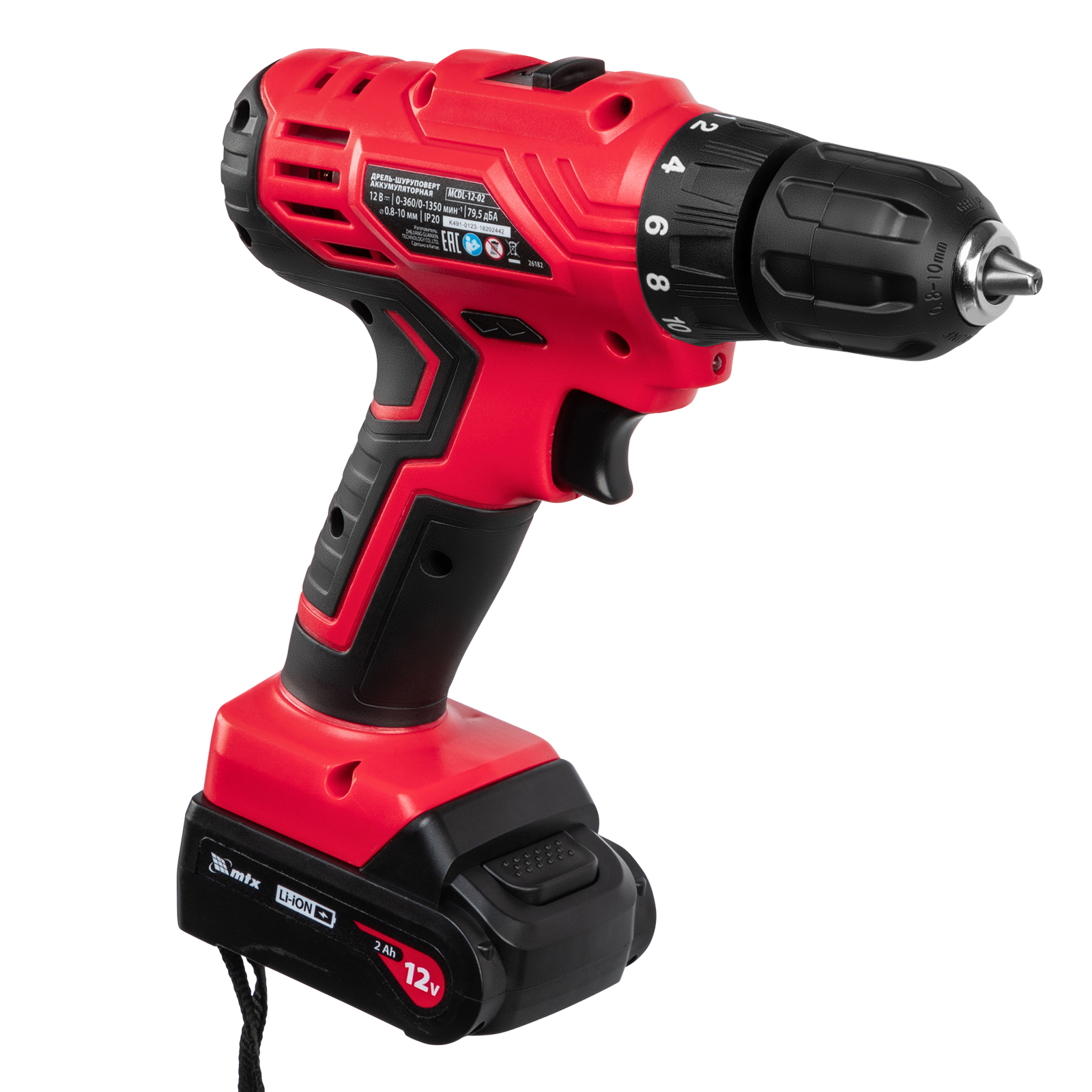 Дрель-шуруповерт аккумуляторная Mcdl-12-02, Li-ion, 12 в, 2 акк. Mtx