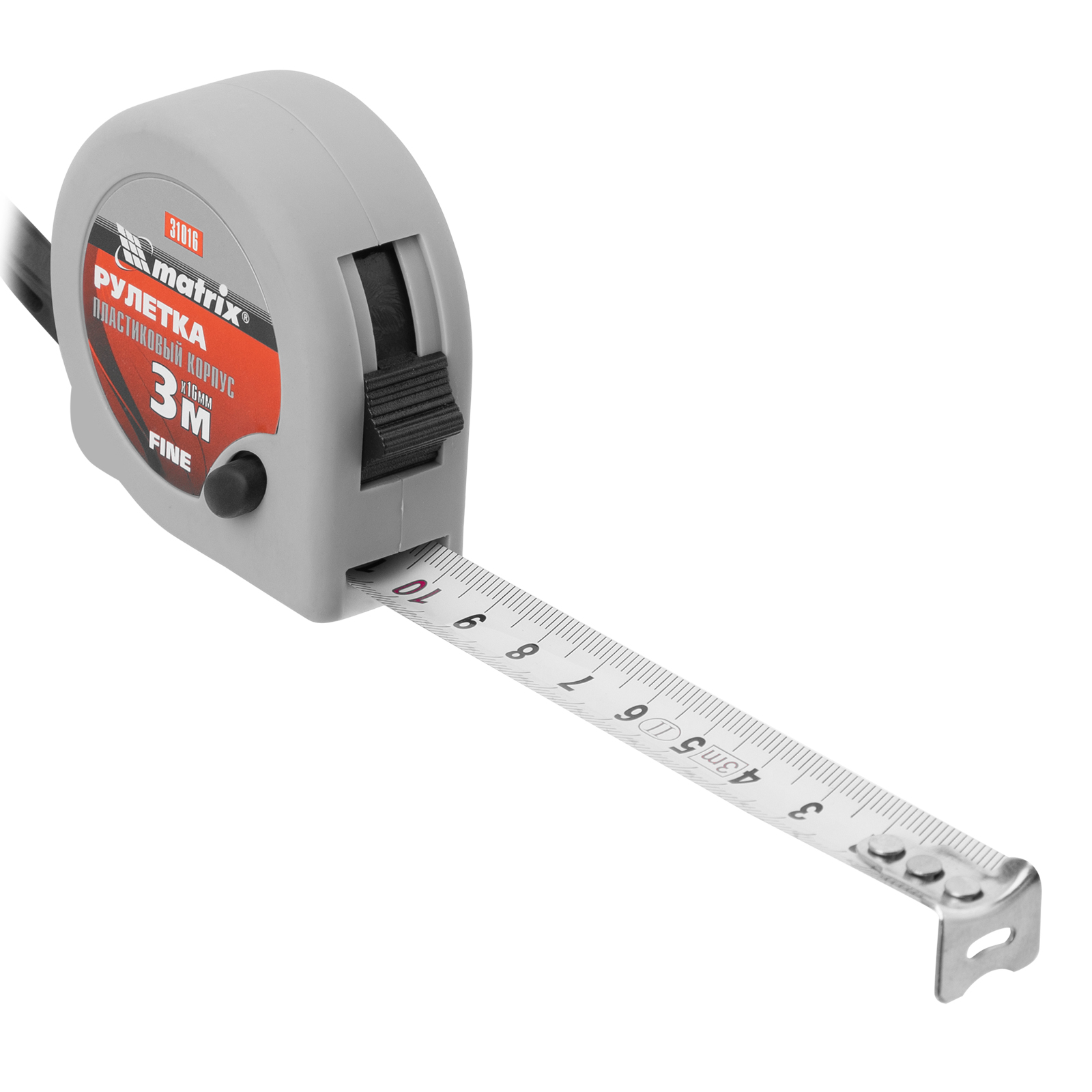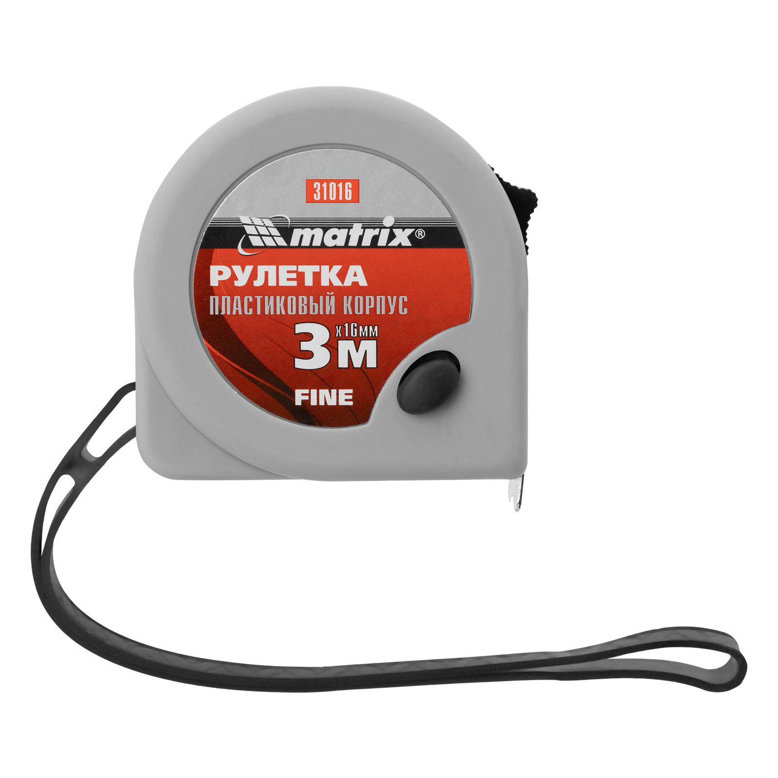 Рулетка Fine,3 м х 16 мм,пластиковый корпус Matrix