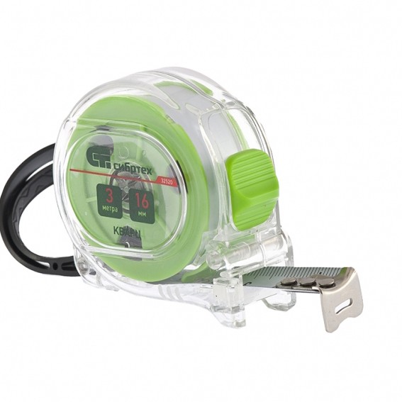 Рулетка кварц, прозрачный корпус, амортизатор, 3 м х 16 мм сибртех. Описание: Рулетки торговой марки Сибртех предназначены для проведения линейных измерений. Корпус рулетки серии Кварц изготовлен из поликарбоната, который имеет высокие показатели прочности и ударной вязкости. Подвижный зацеп позволяет производить измерения внутренних и наружных поверхностей с учетом его толщины. Амортизатор защищает корпус рулетки от повреждений при быстром возврате ленты. Класс точности 2. Вес (кг): 0,117 Бренд: СИБРТЕХ Материал: сталь Длина (м): 3 Измерительная шкала: метрическая Ширина ленты (мм): 16 Материал ленты: сталь Длина в упаковке (мм): 60 Ширина в упаковке (мм): 60 Высота в упаковке (мм): 25 Группа 1: 3-Измерительный инструмент Группа: Рулетки карманные Группа 3: 325-Рулетки СИБРТЕХ и БАРС карманные Тип скидки: Импорт