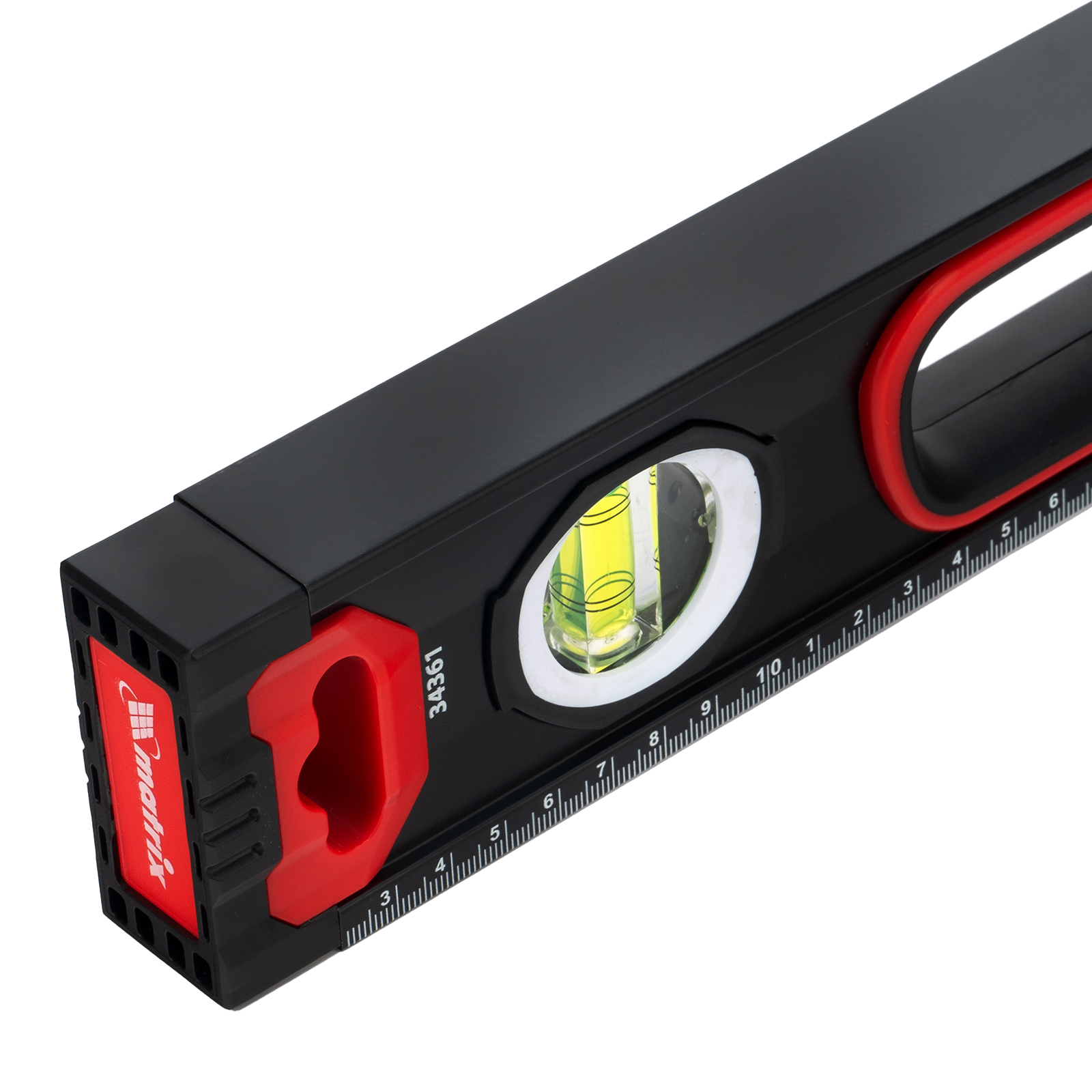 Уровень алюминиевый, усиленный, фрезерованный, 3 глазка, двухкомпонентные рукоятки, 600 мм Matrix