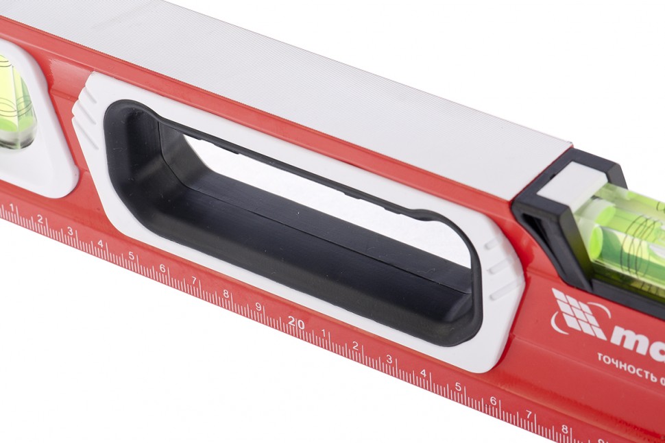 Для удобства в работе на поверхность уровня нанесена измерительная шкала.